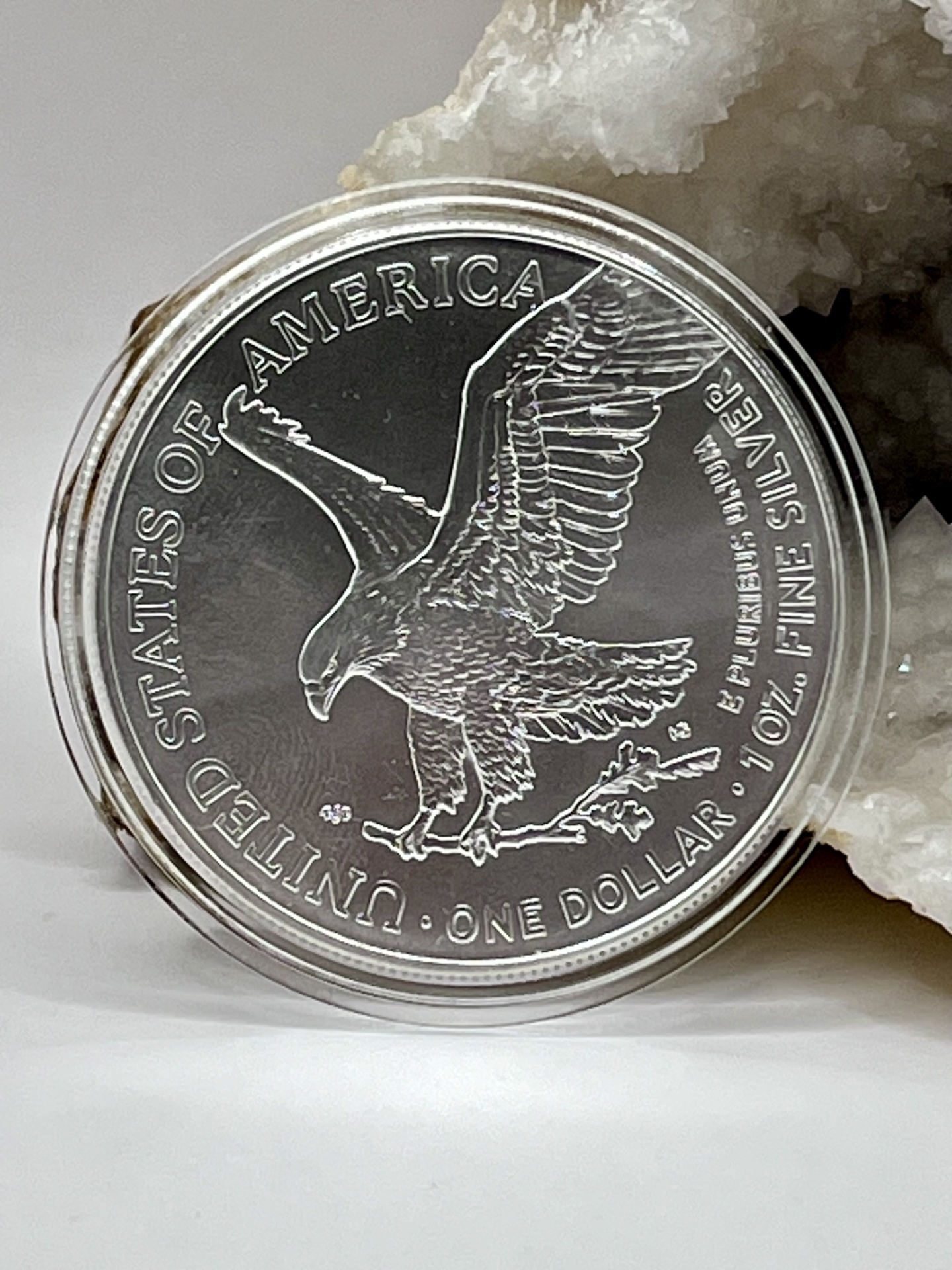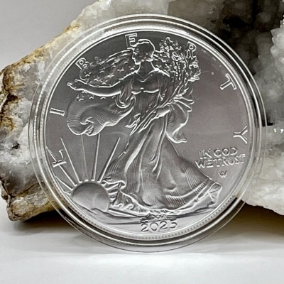 A American Eagle 2025 é a moeda oficial de prata dos Estados Unidos. Cunhada em prata pura .999, com valor facial de $1 USD, apresenta no anverso a clássica imagem "Walking Liberty" e, no reverso, a águia em voo. Cada moeda é garantida pela U.S. Mint quanto ao peso, pureza e teor metálico. Ideal para investimento ou coleção.