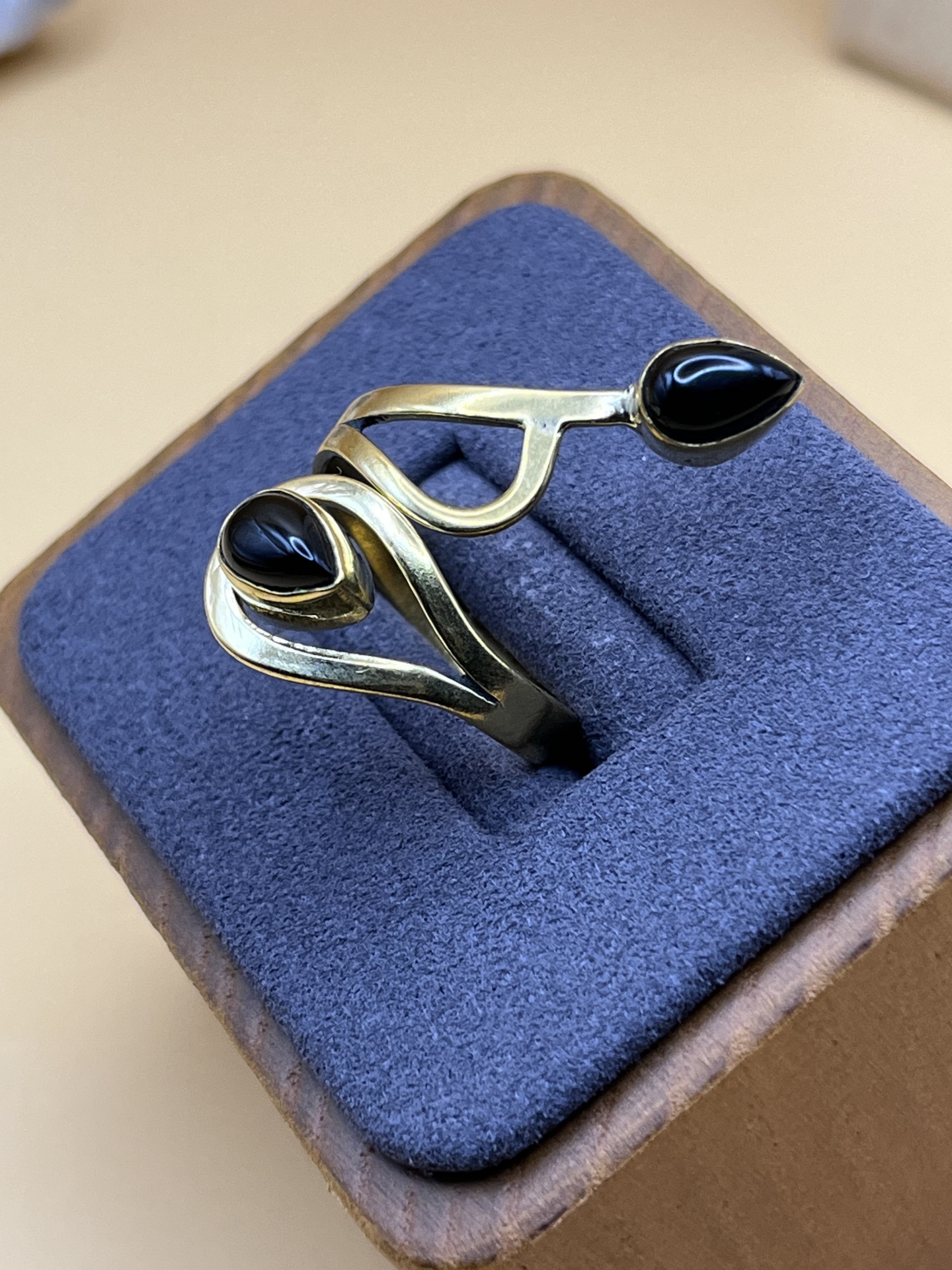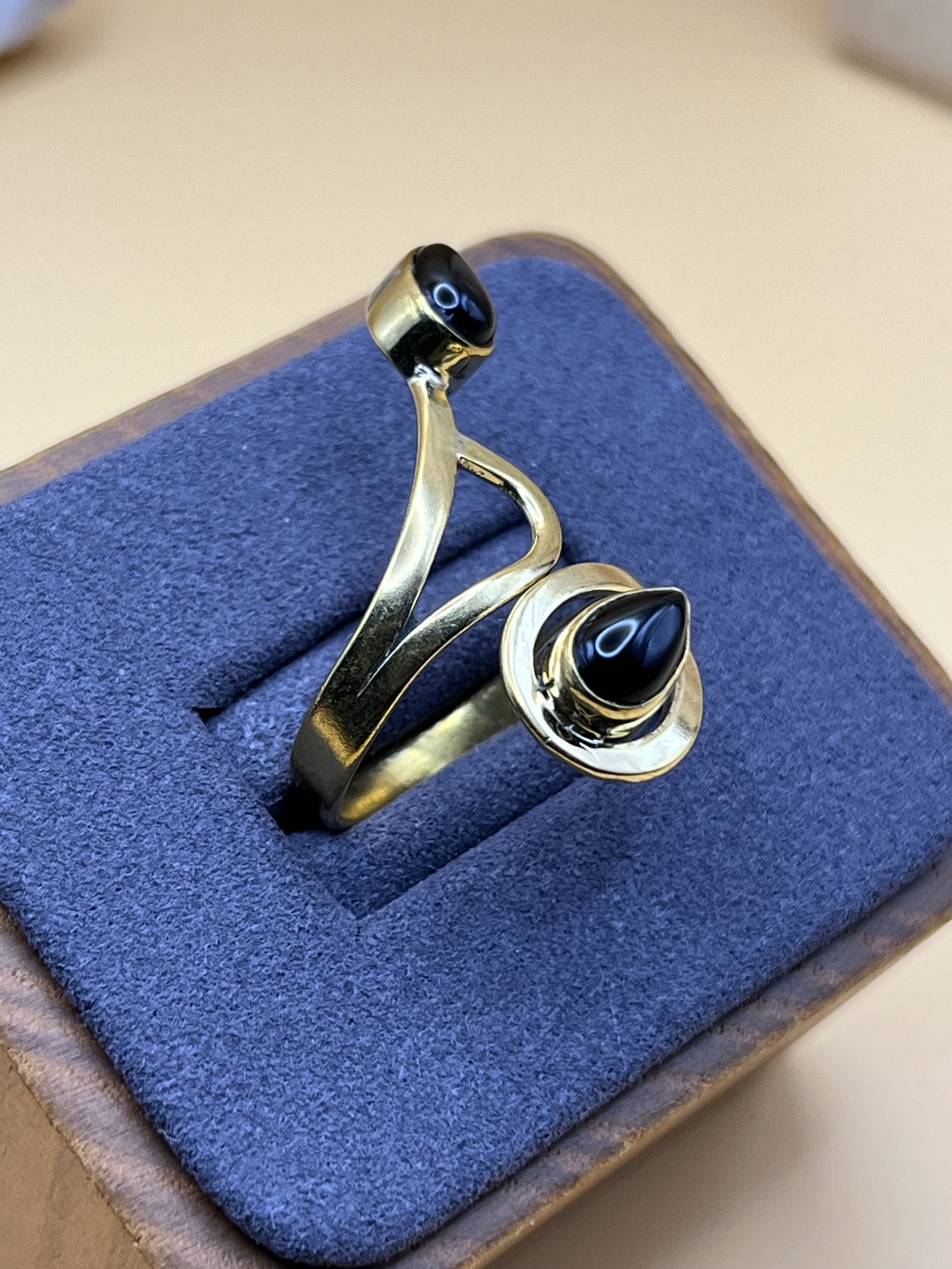 Anel Ajustável em Bronze com Pedra Onyx - Elegância, Estilo e Conforto