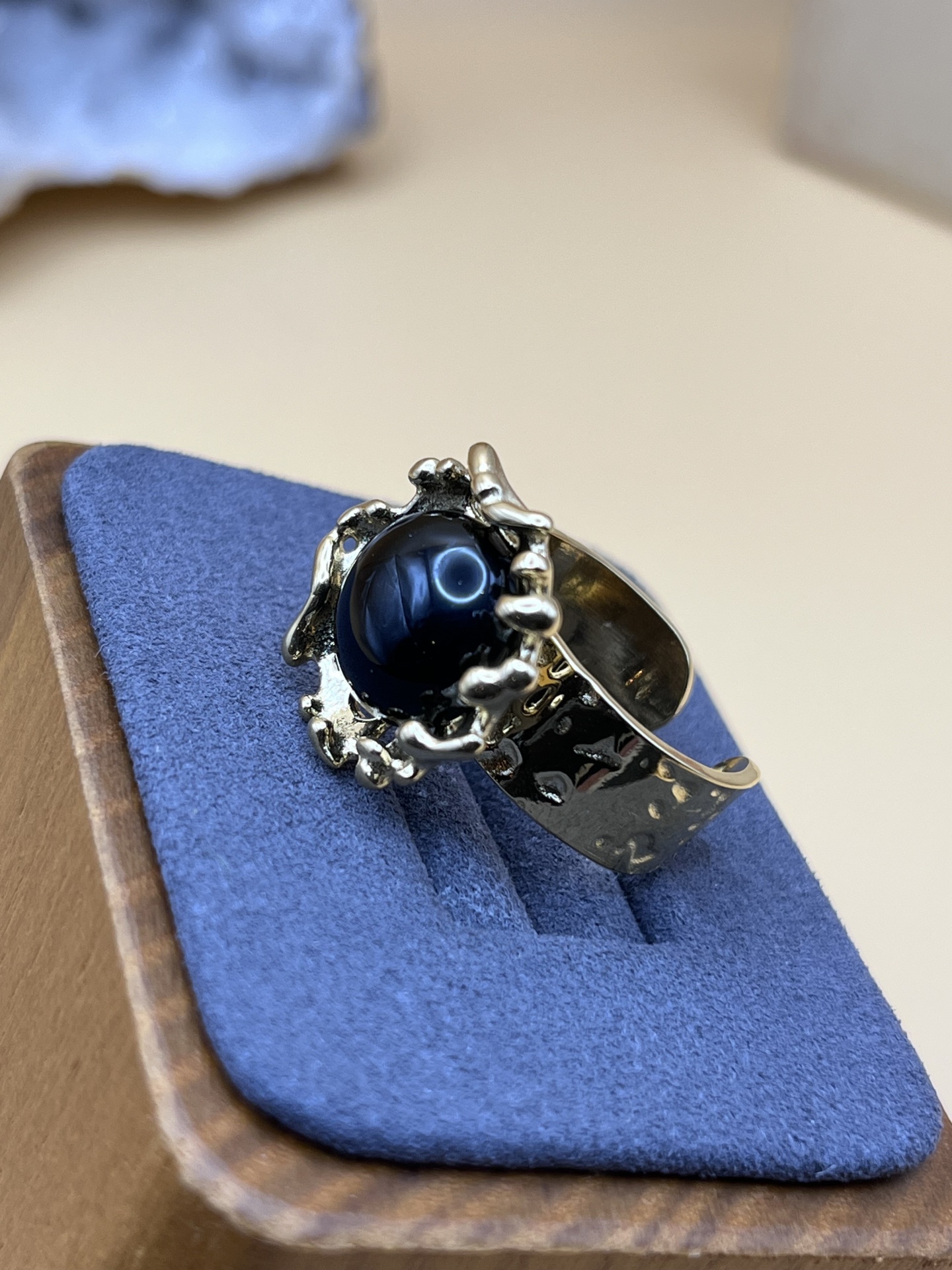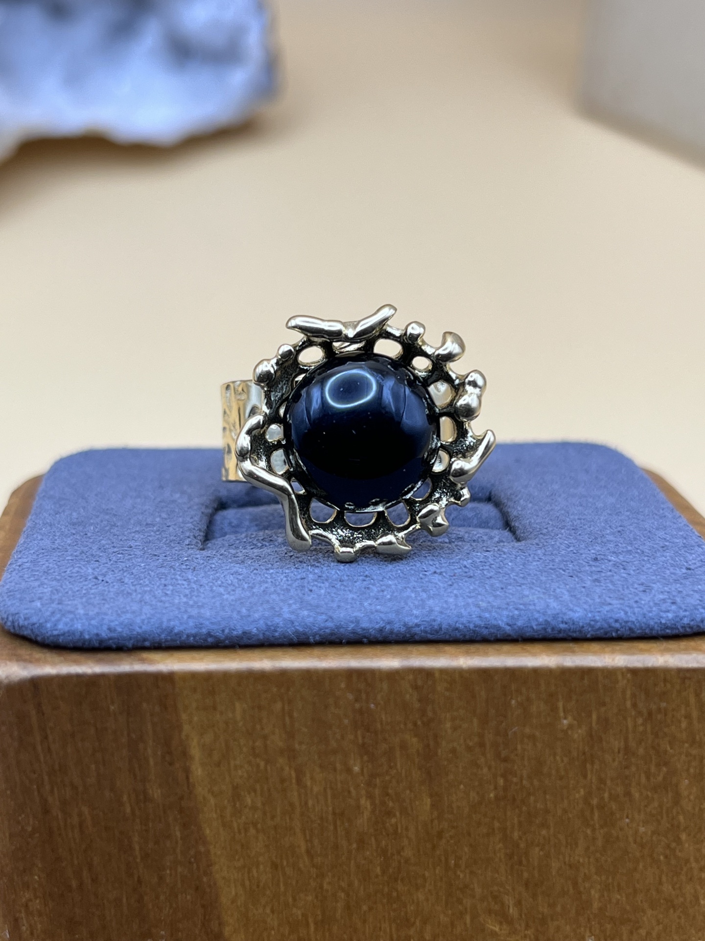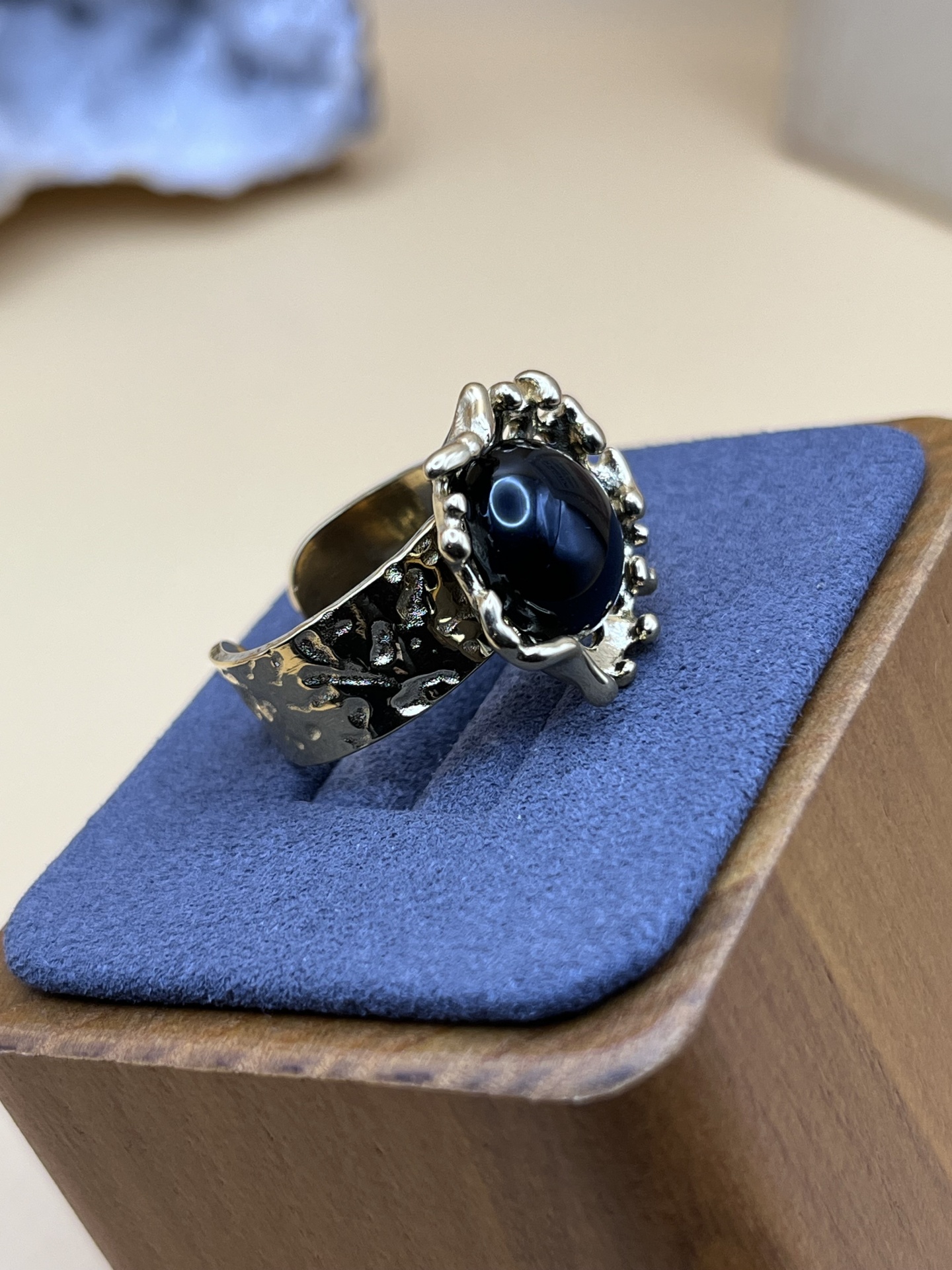 Anel Coroa com Pedra Preta - Realeza e Sofisticação