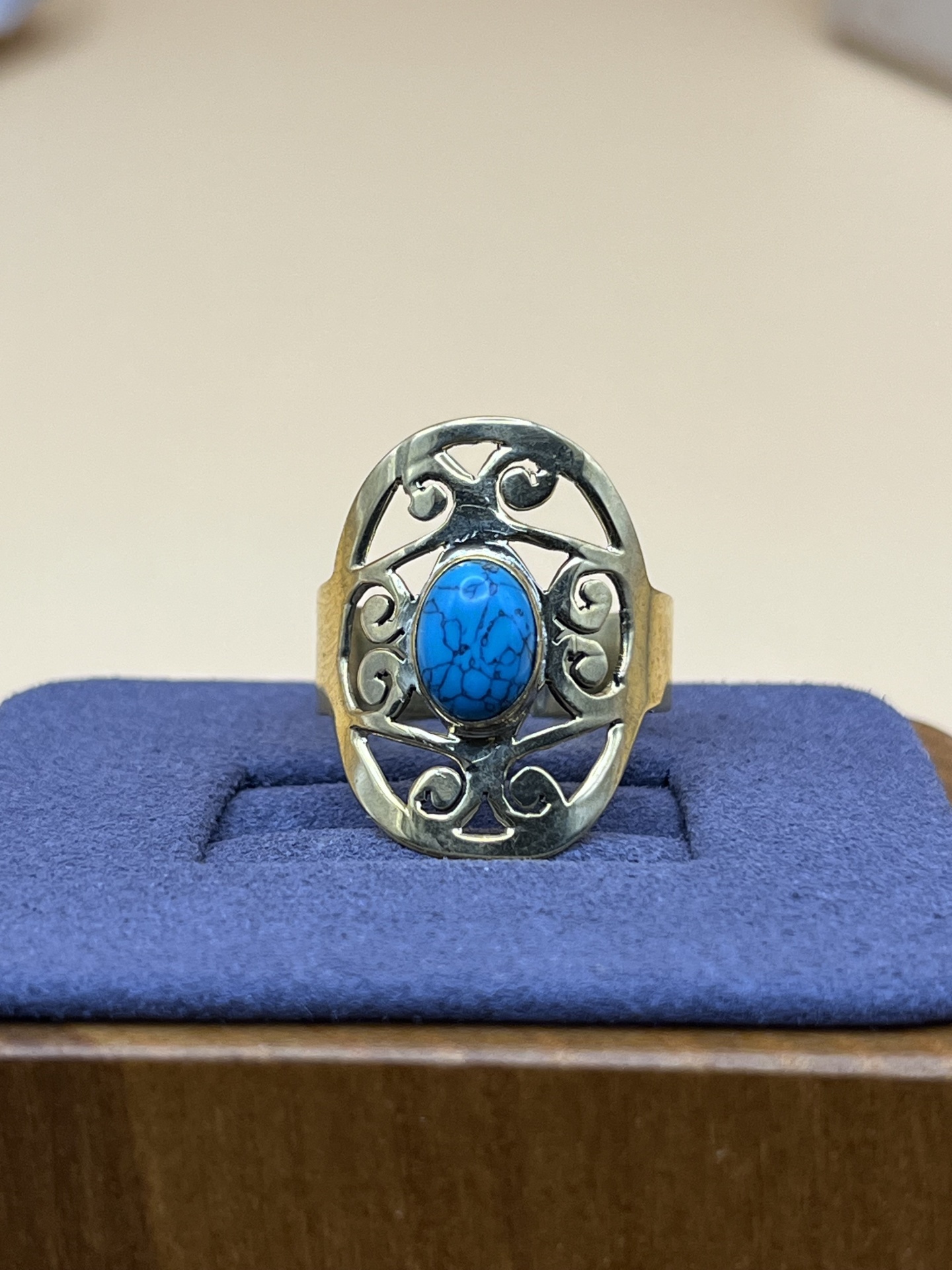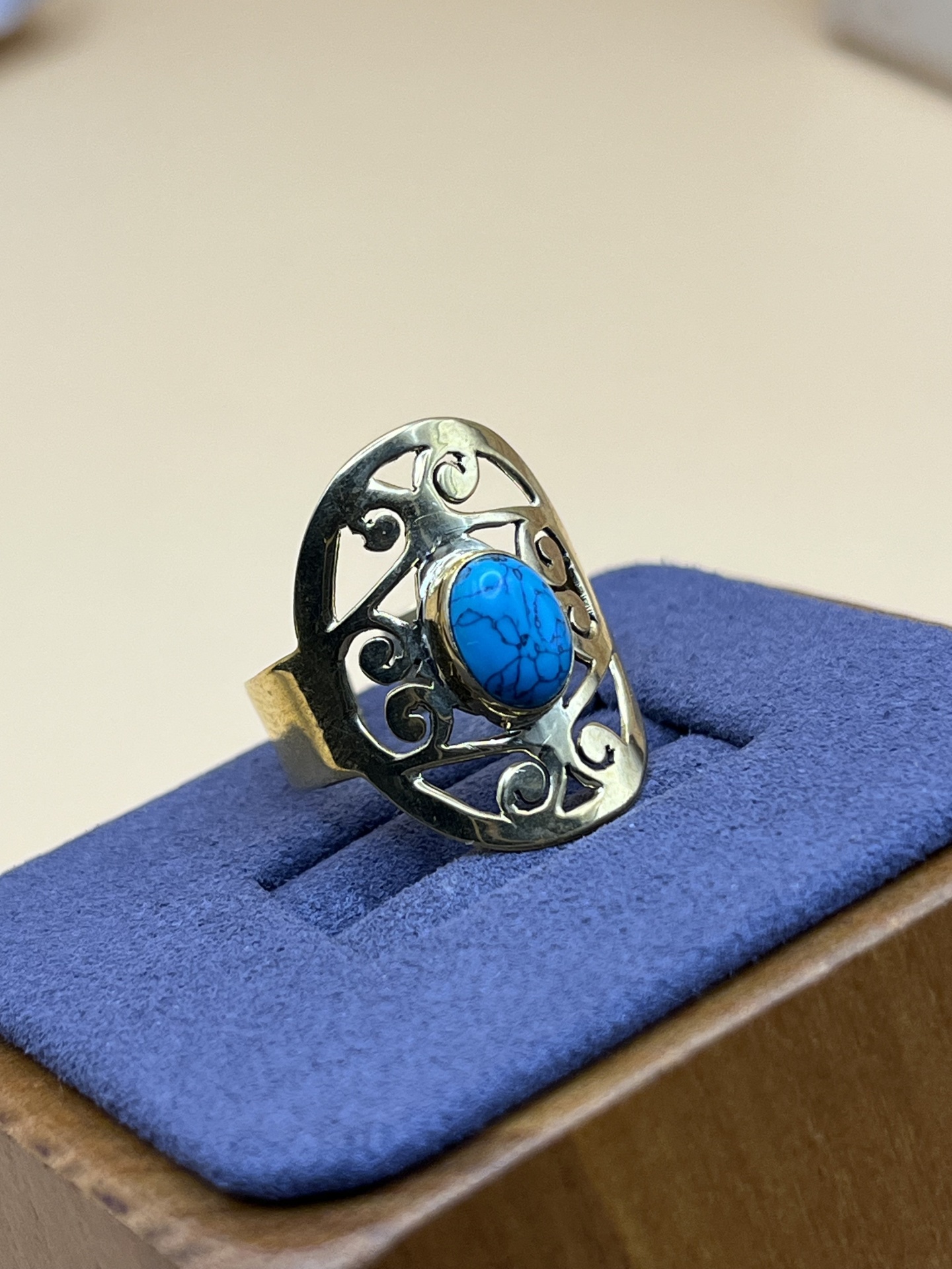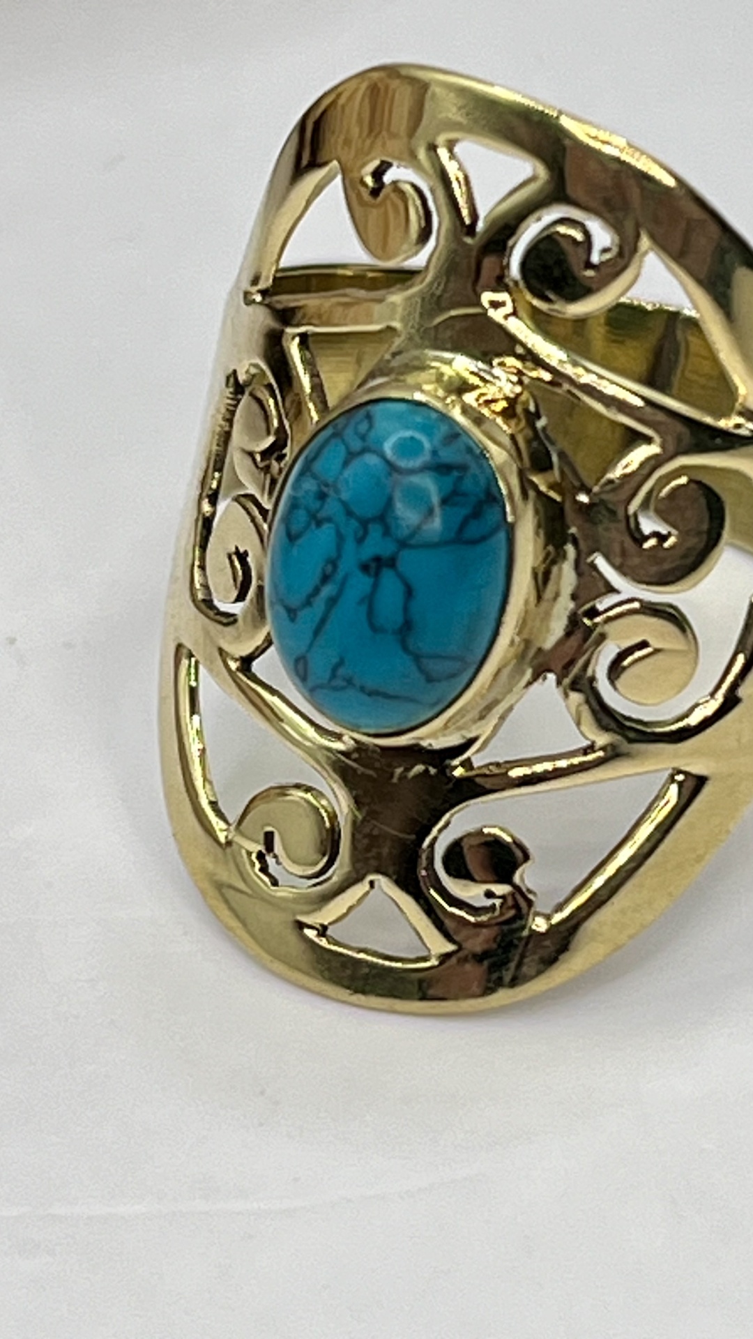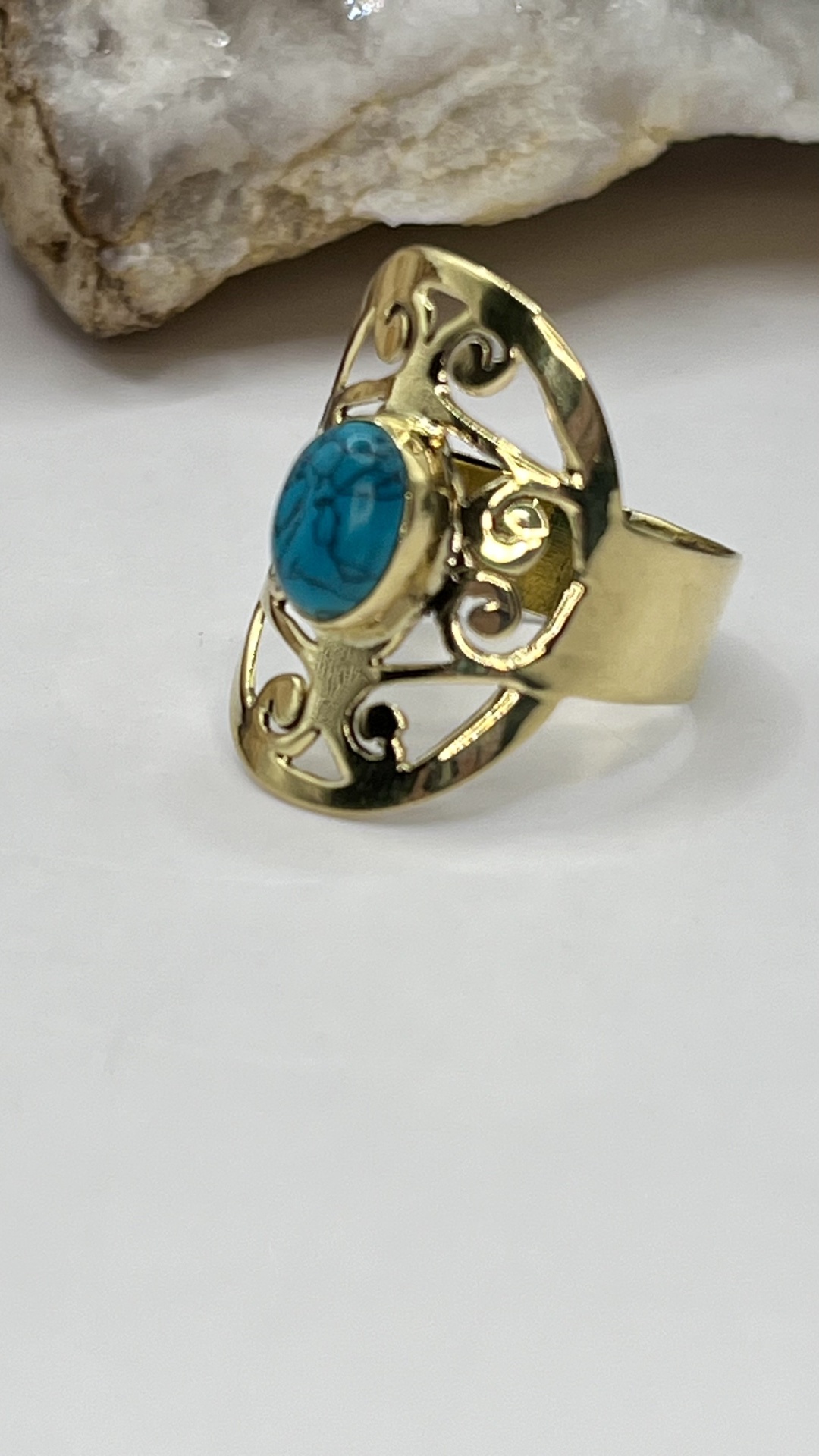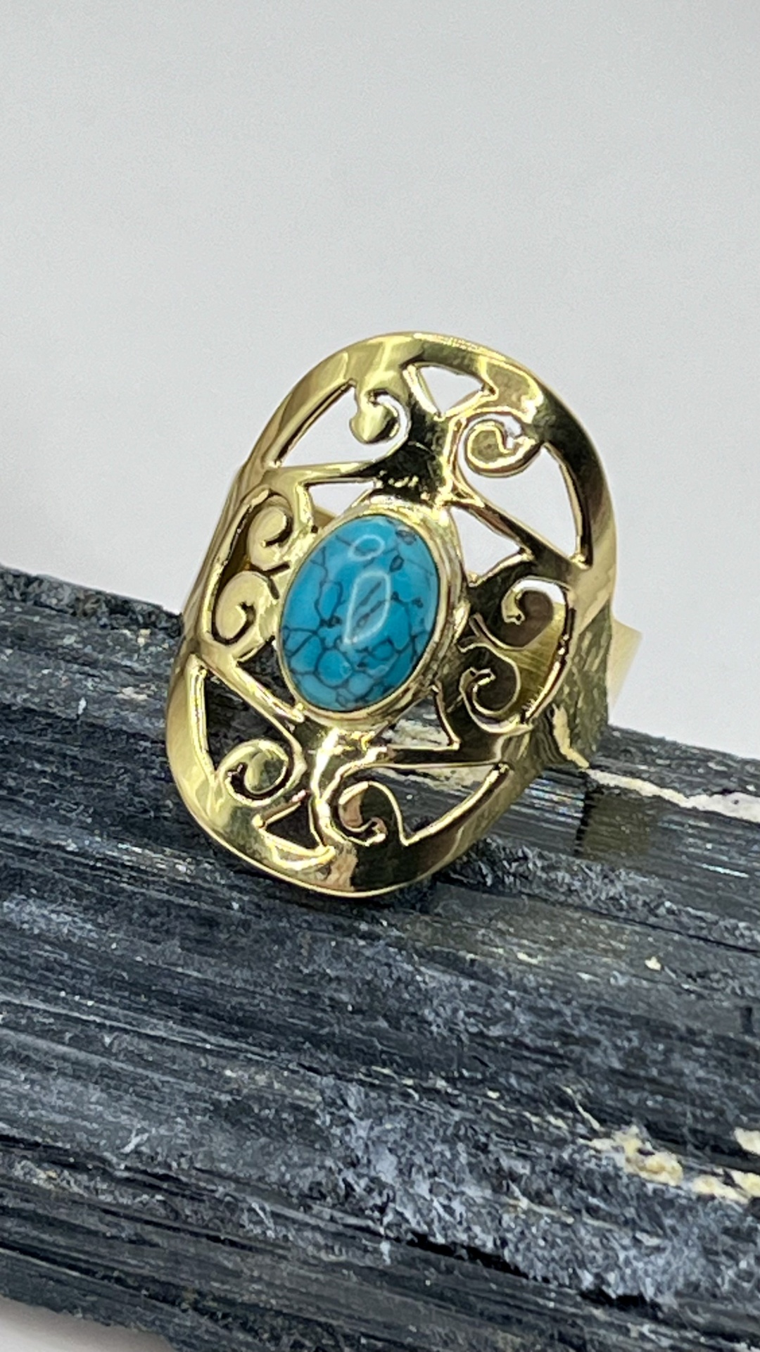 O Anel de Bronze com Turquesa Natural – Ajustável, Estilo e Sofisticação Artesanal é uma peça de joalharia em bronze artesanal, com turquesa natural, ajustável para conforto diário. Design elegante que realça a autenticidade artesanal e complementa qualquer look.