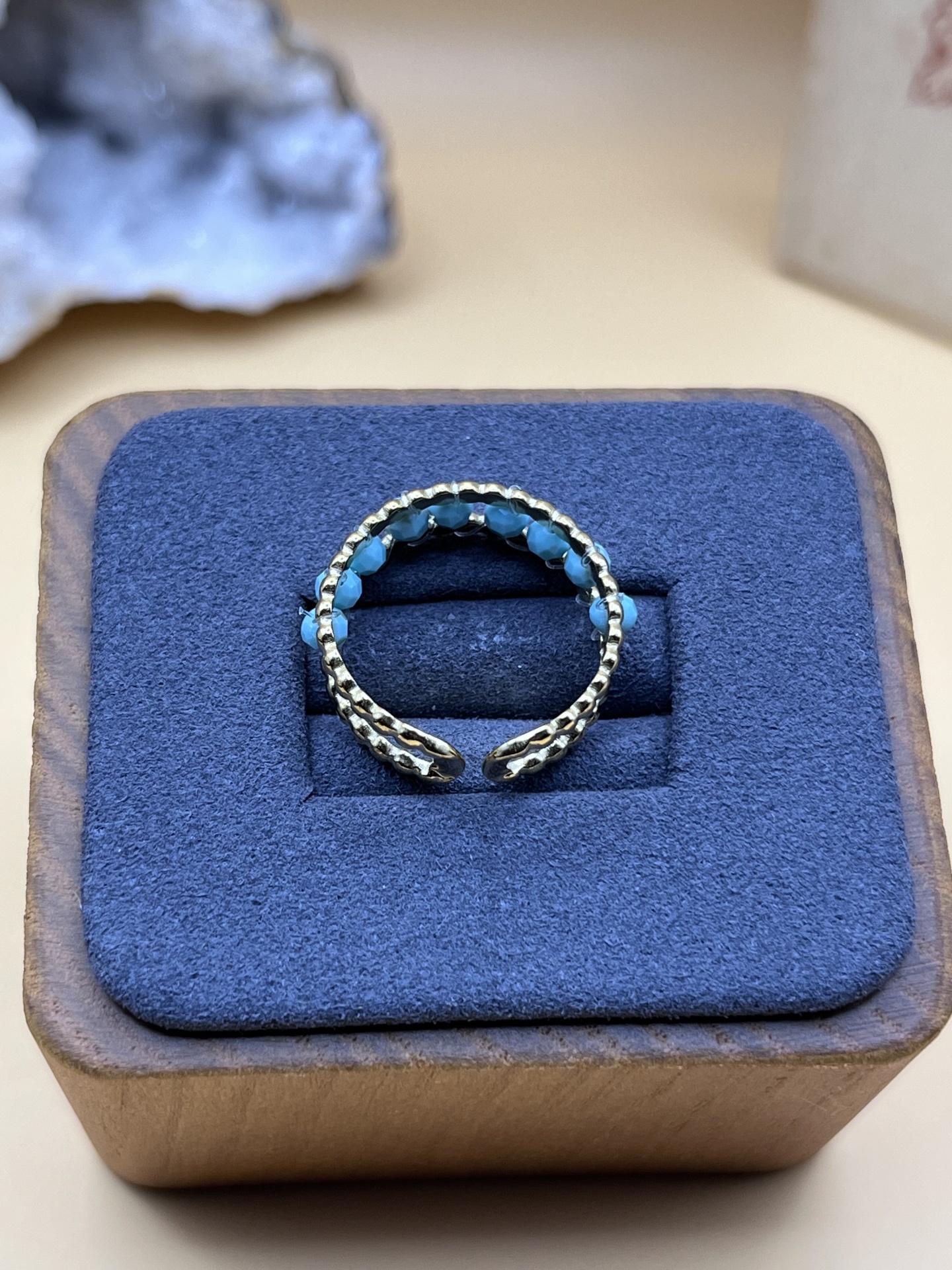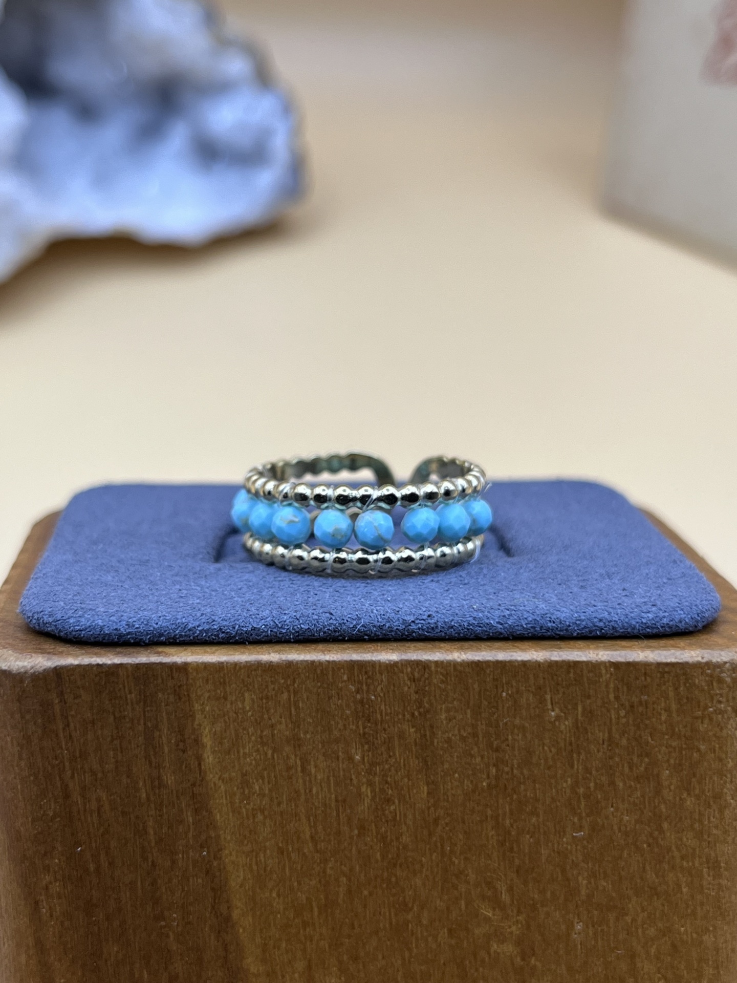 O Anel Duplo em Aço Inoxidável com Pedra Azul Turquesa – Modernidade e Sofisticação é uma peça de joalharia em liga metálica, com turquesa natural, acabamento cuidado para uso diário. Design elegante que realça a autenticidade artesanal e complementa qualquer look.