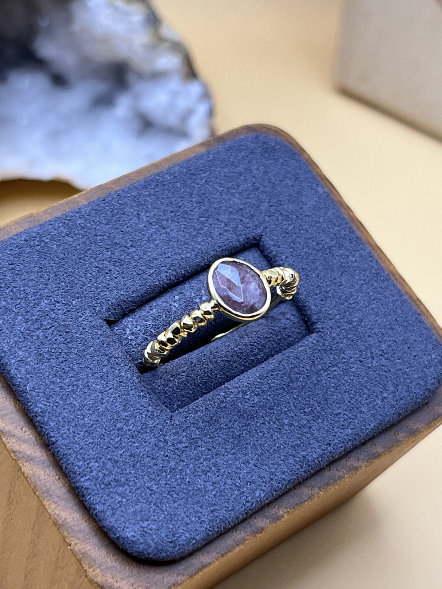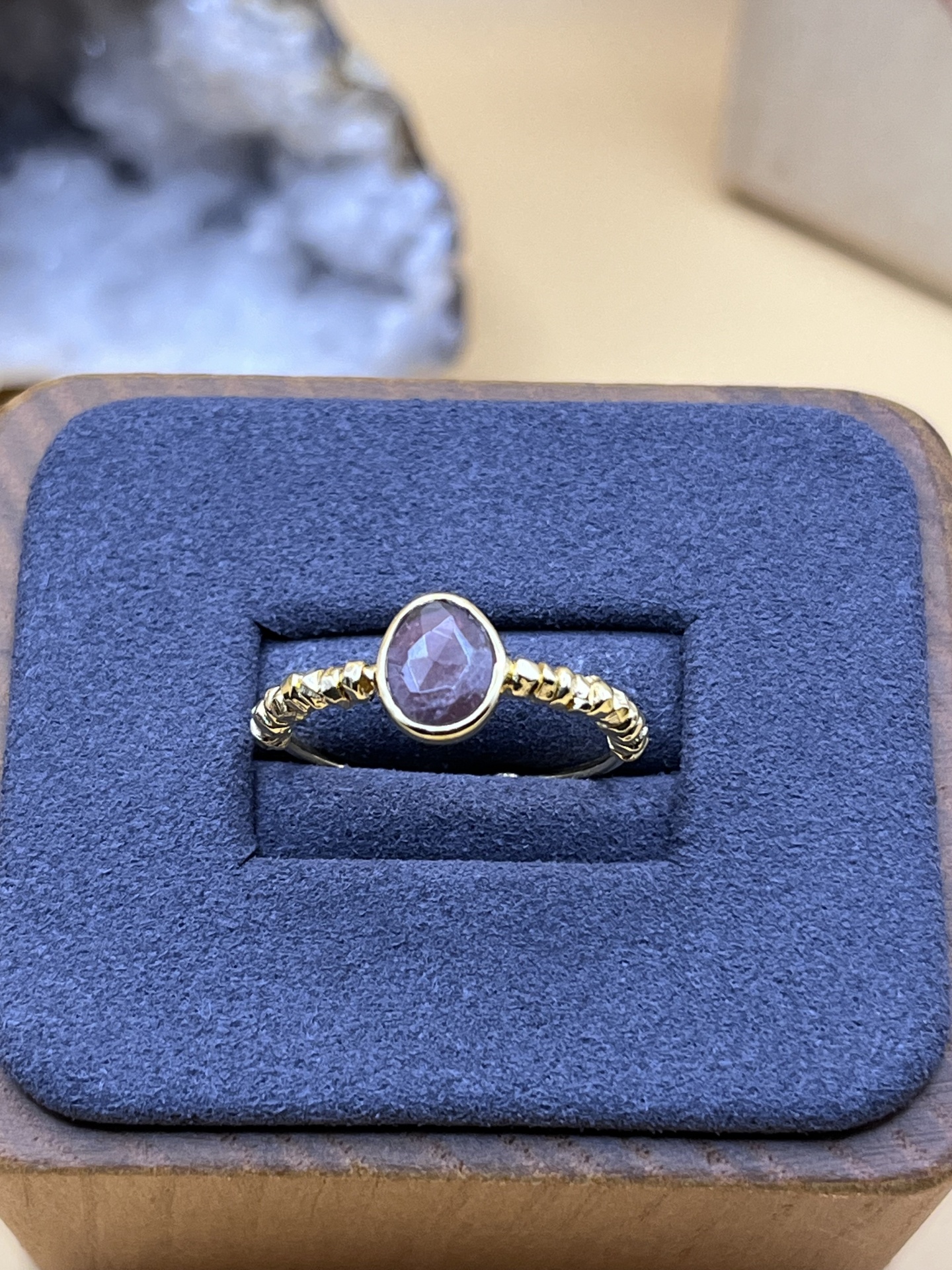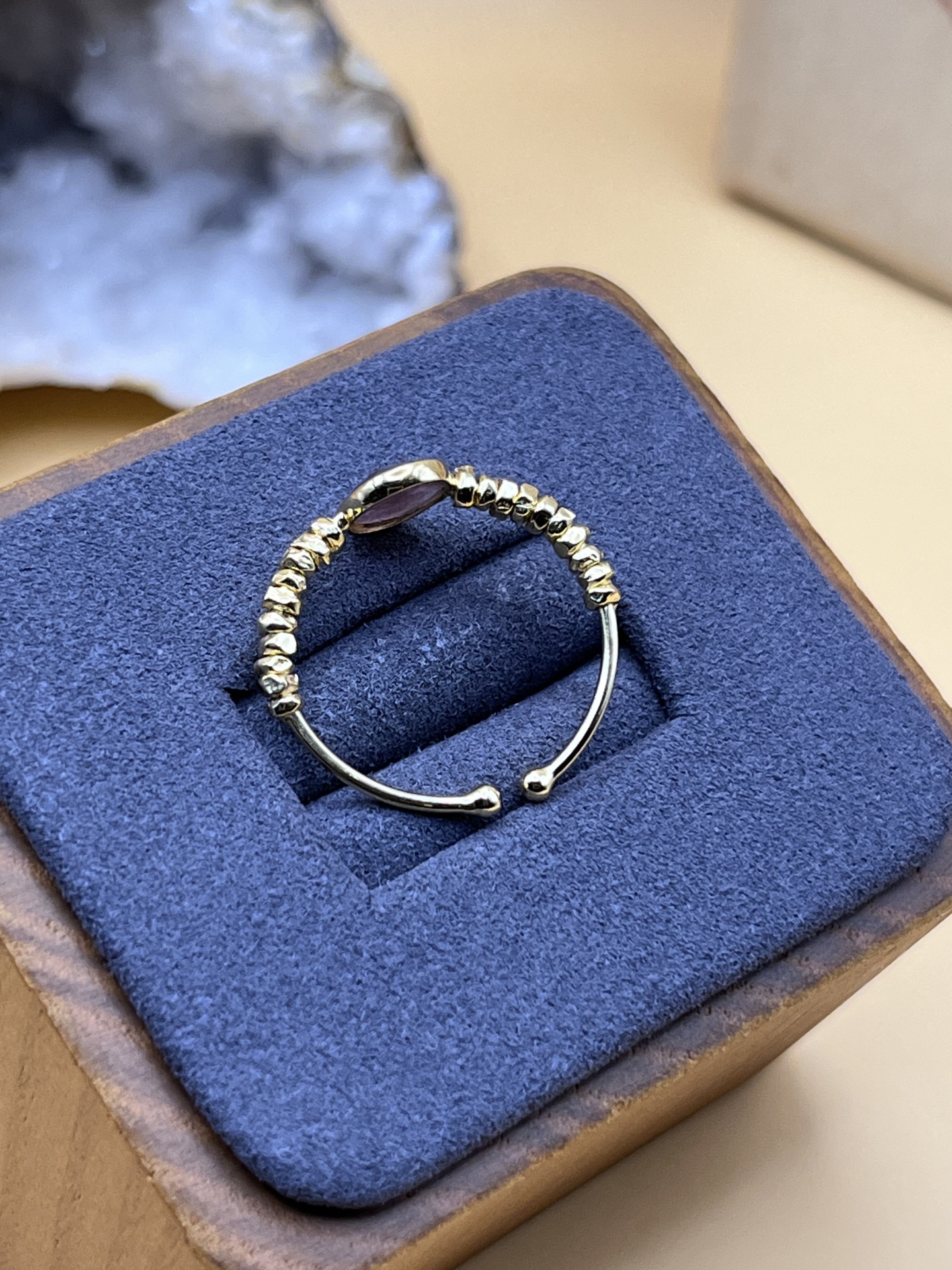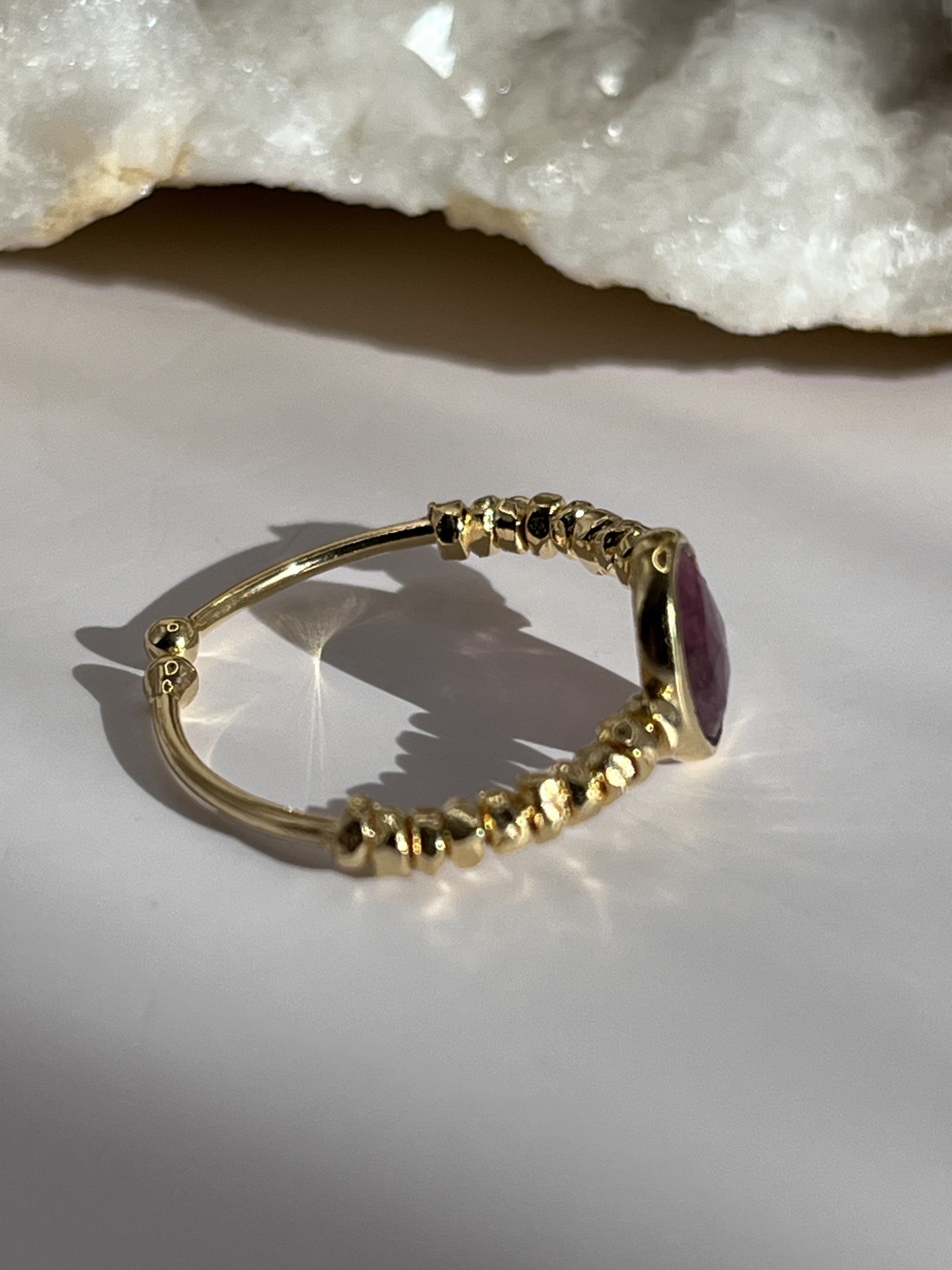 Anel em banho de ouro 18 k (2 μm) com turmalina-rosa natural, de design ajustável para tamanhos 54–60. A pedra destaca-se pelo seu tom delicado e simbolismo de equilíbrio emocional, enquanto o acabamento polido garante brilho e durabilidade no uso diário. Uma joia elegante e versátil, perfeita para realçar o estilo com um toque de cor e significado.