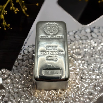 A Stylish Stone tem o prazer de enriquecer sua coleção privada com a exclusiva Barra de Prata Fundida de 500 gramas, cunhada pela prestigiada Germania Mint. Este exemplar é sinónimo de qualidade superior, consistindo em prata pura de 99,99% e evidenciando a mestria e precisão alemã no trabalho com metais preciosos. Cada barra é marcada com um número de série único, assegurando a sua autenticidade e singularidade. O logo da Germania Mint, estampado na superfície da barra, atesta a sua origem e prestígio.