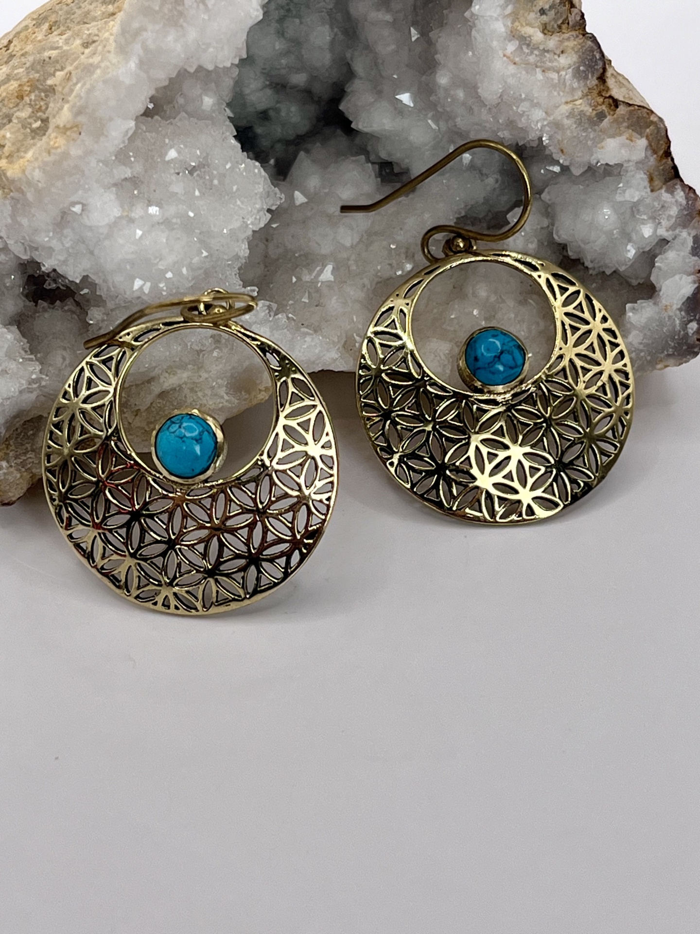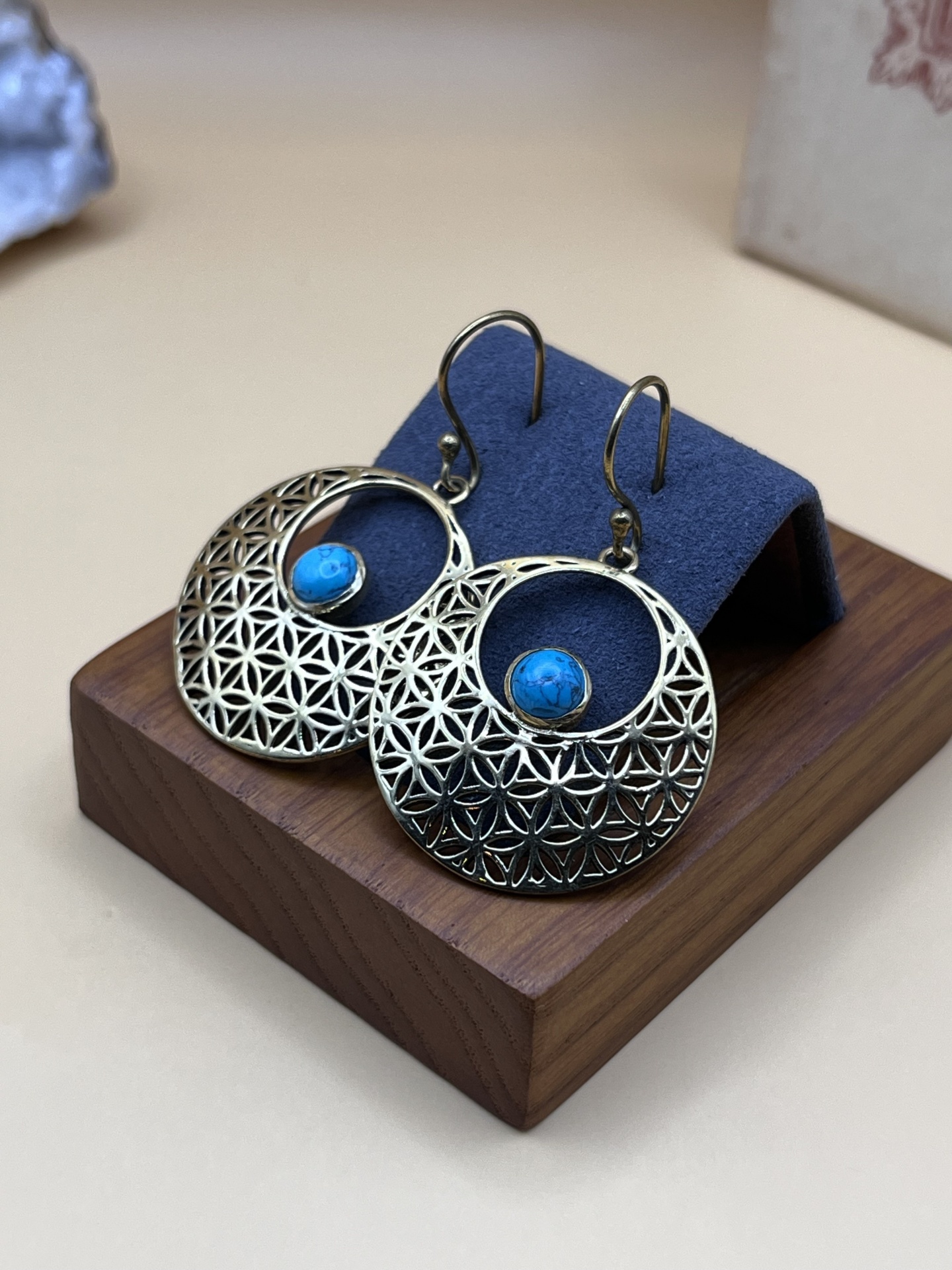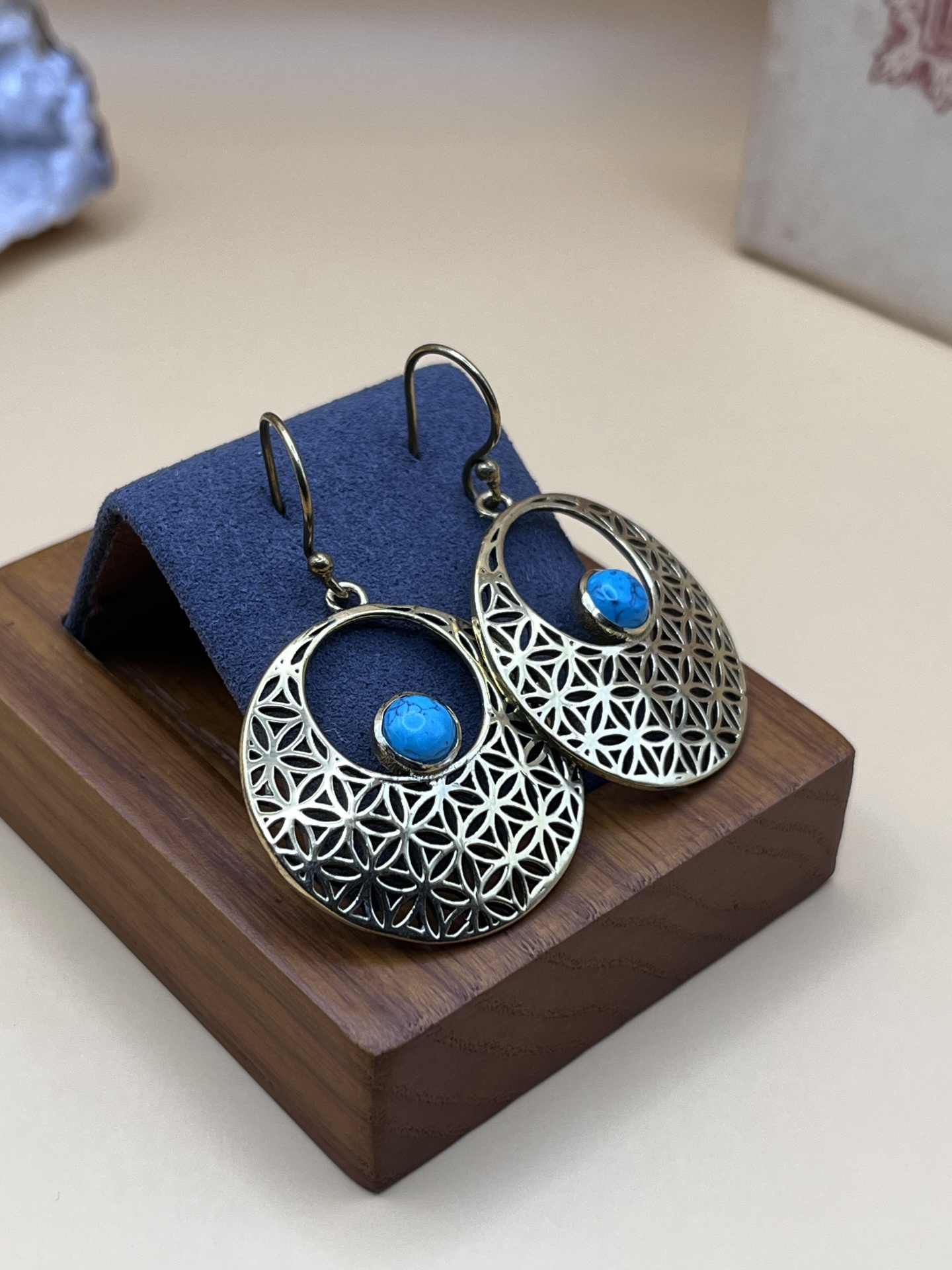 Adicione um toque de sofisticação ao seu visual com os Brincos de Bronze com Turquesa, peças únicas que combinam beleza artesanal e estilo atemporal. Com 2,9 cm de comprimento e aproximadamente 10 gramas, esses brincos são leves e confortáveis, perfeitos para qualquer ocasião, seja um evento especial ou um dia casual.