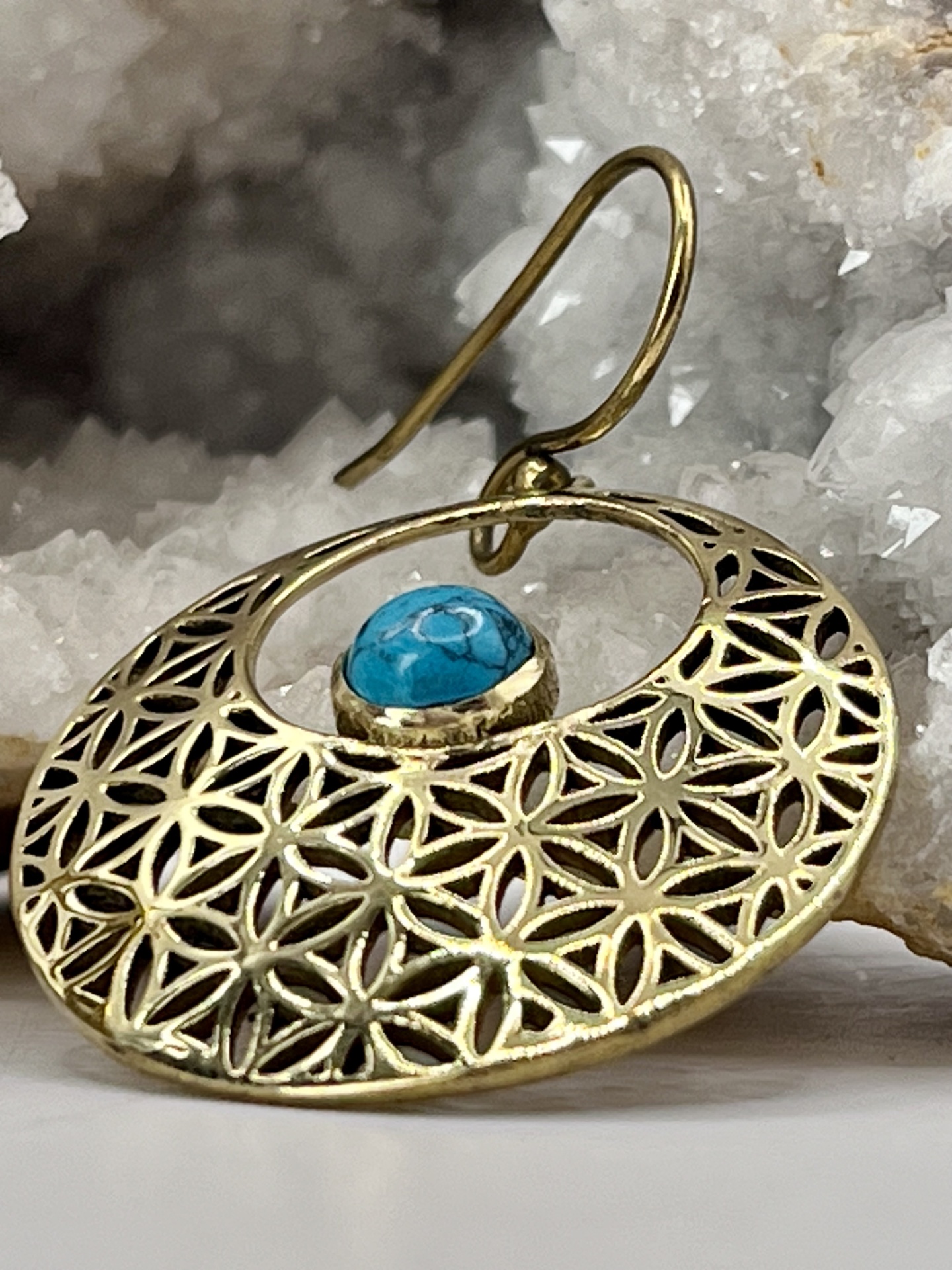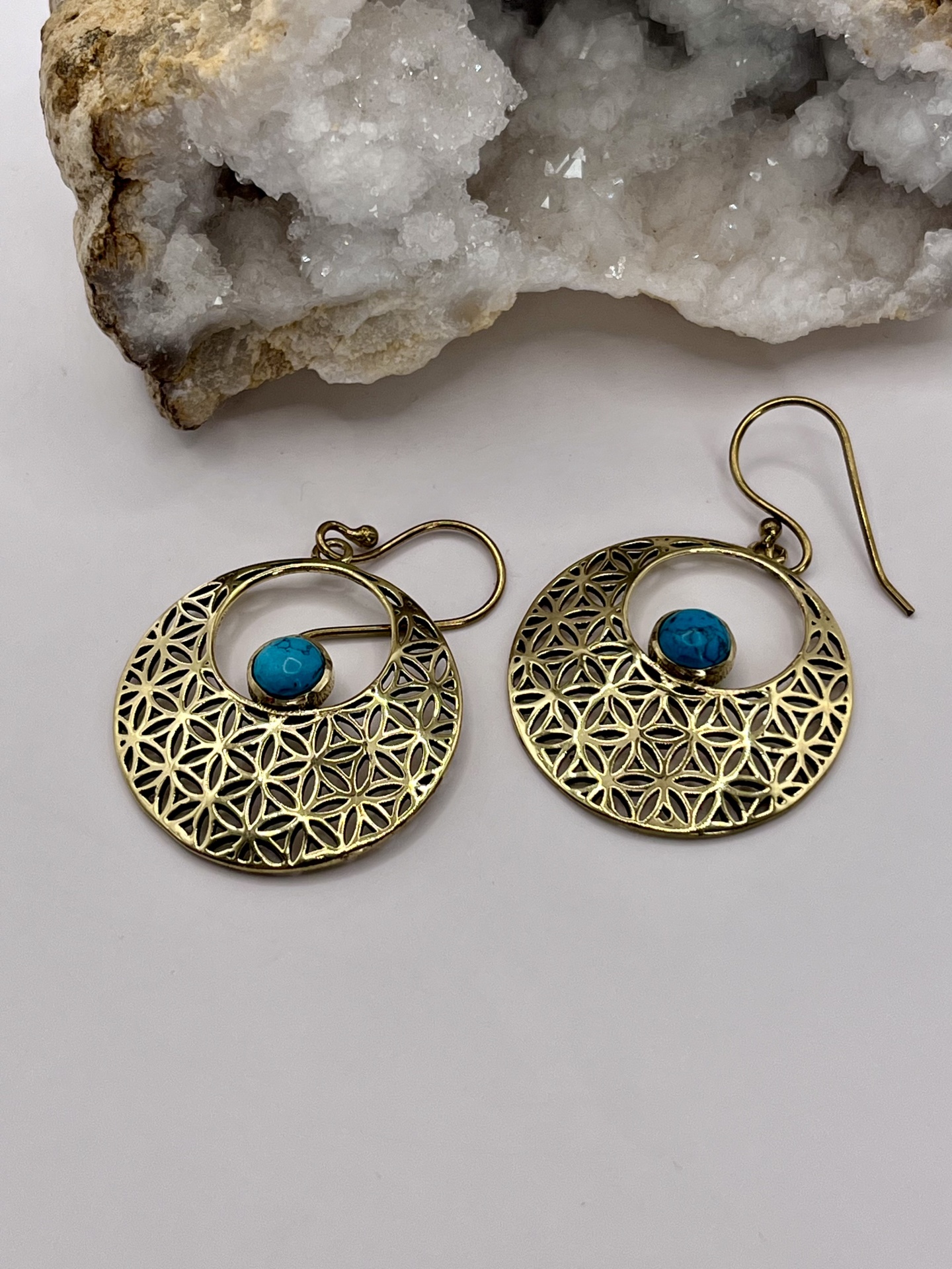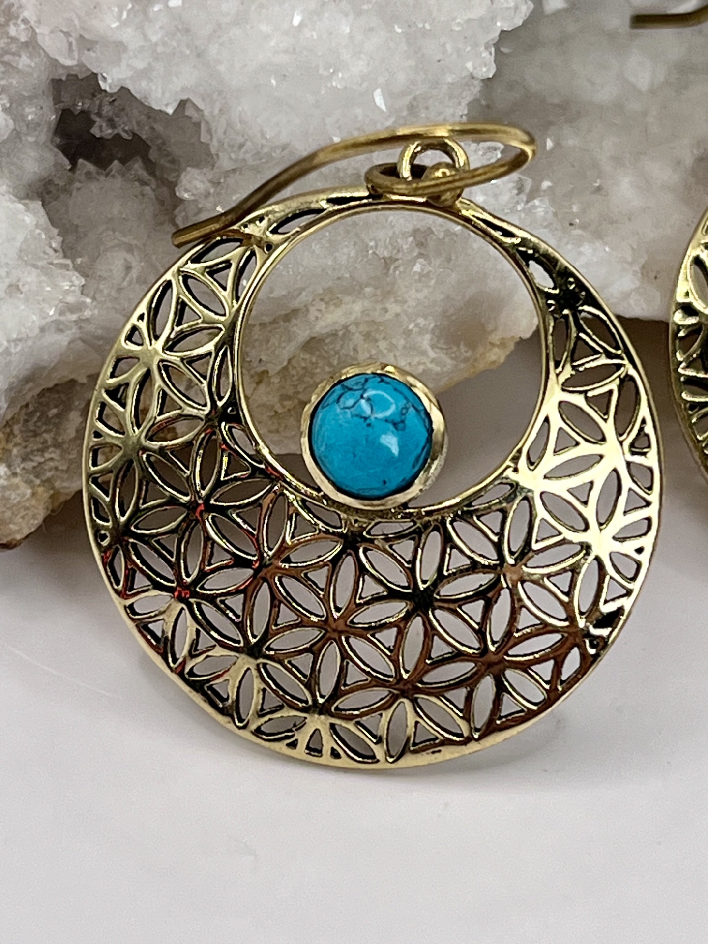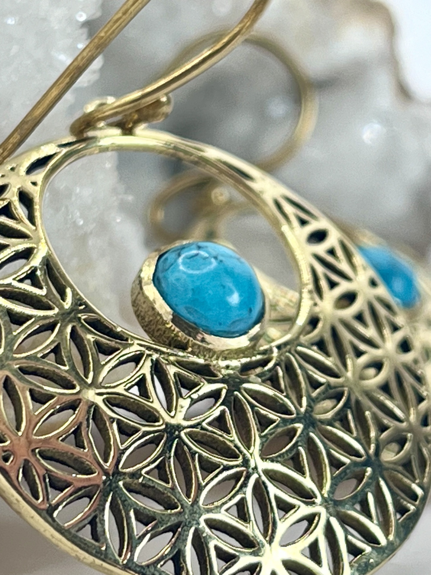 Adicione um toque de sofisticação ao seu visual com os Brincos de Bronze com Turquesa, peças únicas que combinam beleza artesanal e estilo atemporal. Com 2,9 cm de comprimento e aproximadamente 10 gramas, esses brincos são leves e confortáveis, perfeitos para qualquer ocasião, seja um evento especial ou um dia casual.