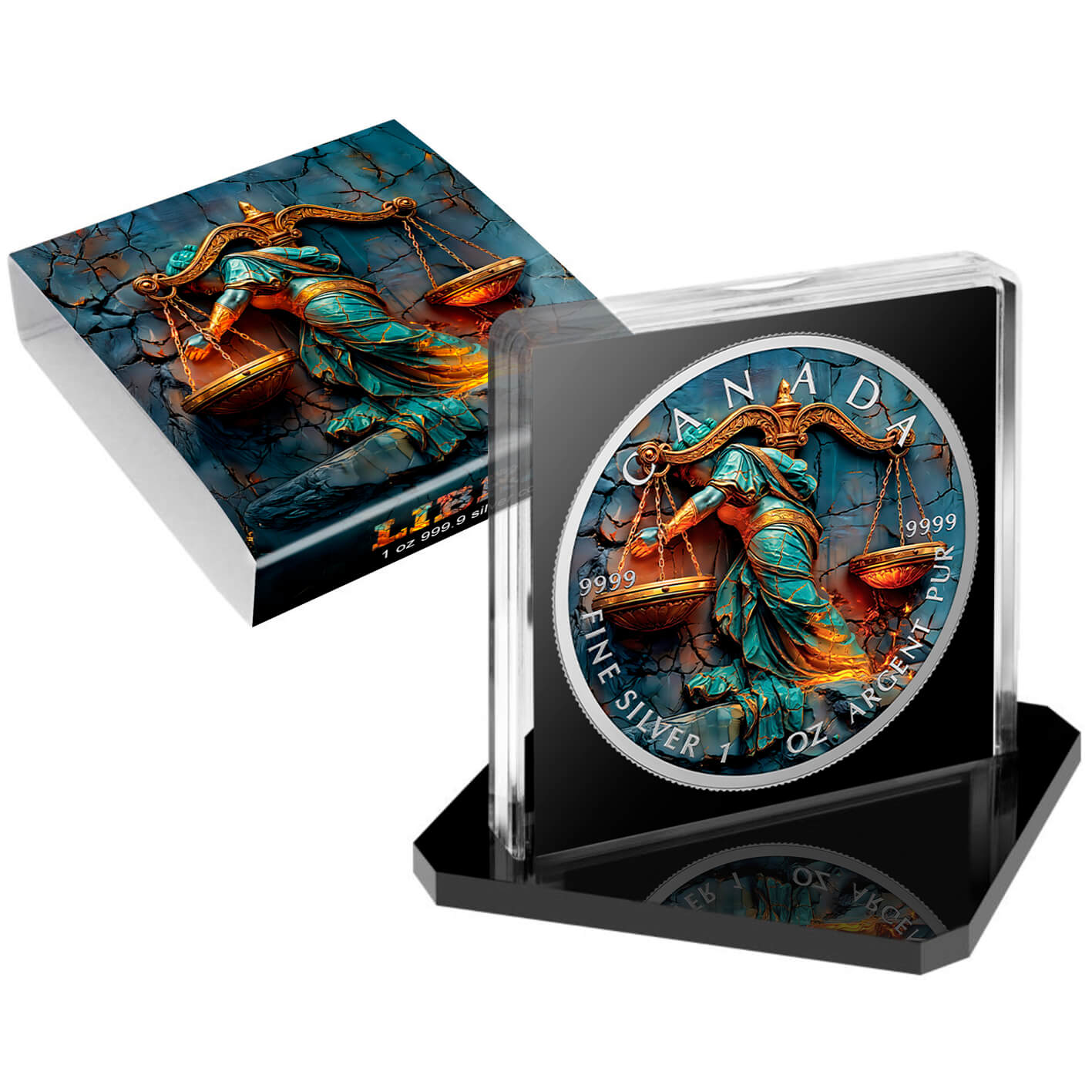 A Canadá 5 Dollars 2025 Stone Zodiac Balança - 1 oz Prata Colorida é uma moeda rara e de tiragem extremamente limitada, com apenas 100 exemplares em todo o mundo. Cunhada em prata pura 999.9, apresenta um diâmetro de 38 mm e acabamento colorido de alta definição, representando o signo correspondente desta série única. Cada moeda vem numerada, acompanhada de certificado de autenticidade e caixa de apresentação original. Uma peça ideal tanto para colecionadores exigentes como para investidores em metais preciosos com valor artístico. Produzida no Royal Canadian Mint, esta edição combina arte, raridade e pureza num só exemplar.