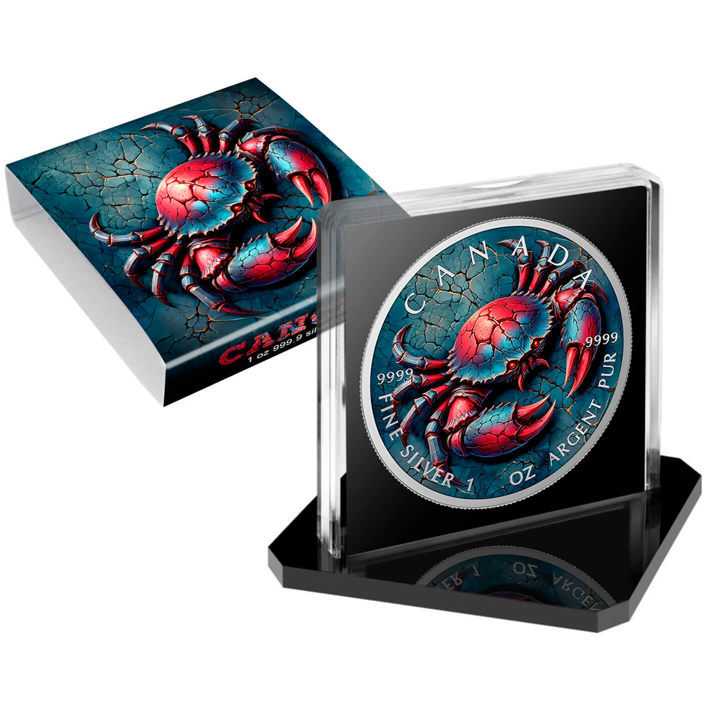 A Canadá 5 Dollars 2025 Stone Zodiac Caranguejo 1 oz Prata Colorida é uma moeda rara e de tiragem extremamente limitada, com apenas 100 exemplares em todo o mundo. Cunhada em prata pura 999.9, apresenta um diâmetro de 38 mm e acabamento colorido de alta definição, representando o signo correspondente desta série única. Cada moeda vem numerada, acompanhada de certificado de autenticidade e caixa de apresentação original. Uma peça ideal tanto para colecionadores exigentes como para investidores em metais preciosos com valor artístico. Produzida no Royal Canadian Mint, esta edição combina arte, raridade e pureza num só exemplar.