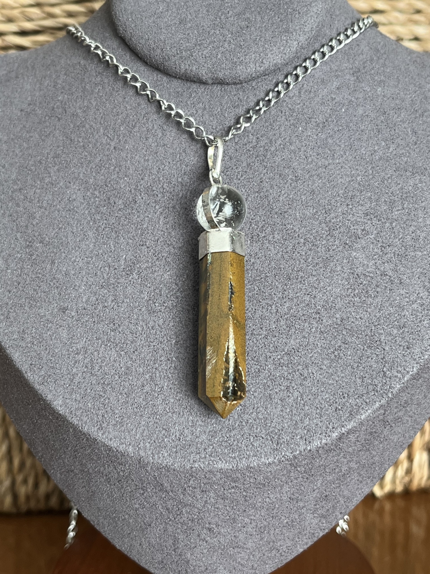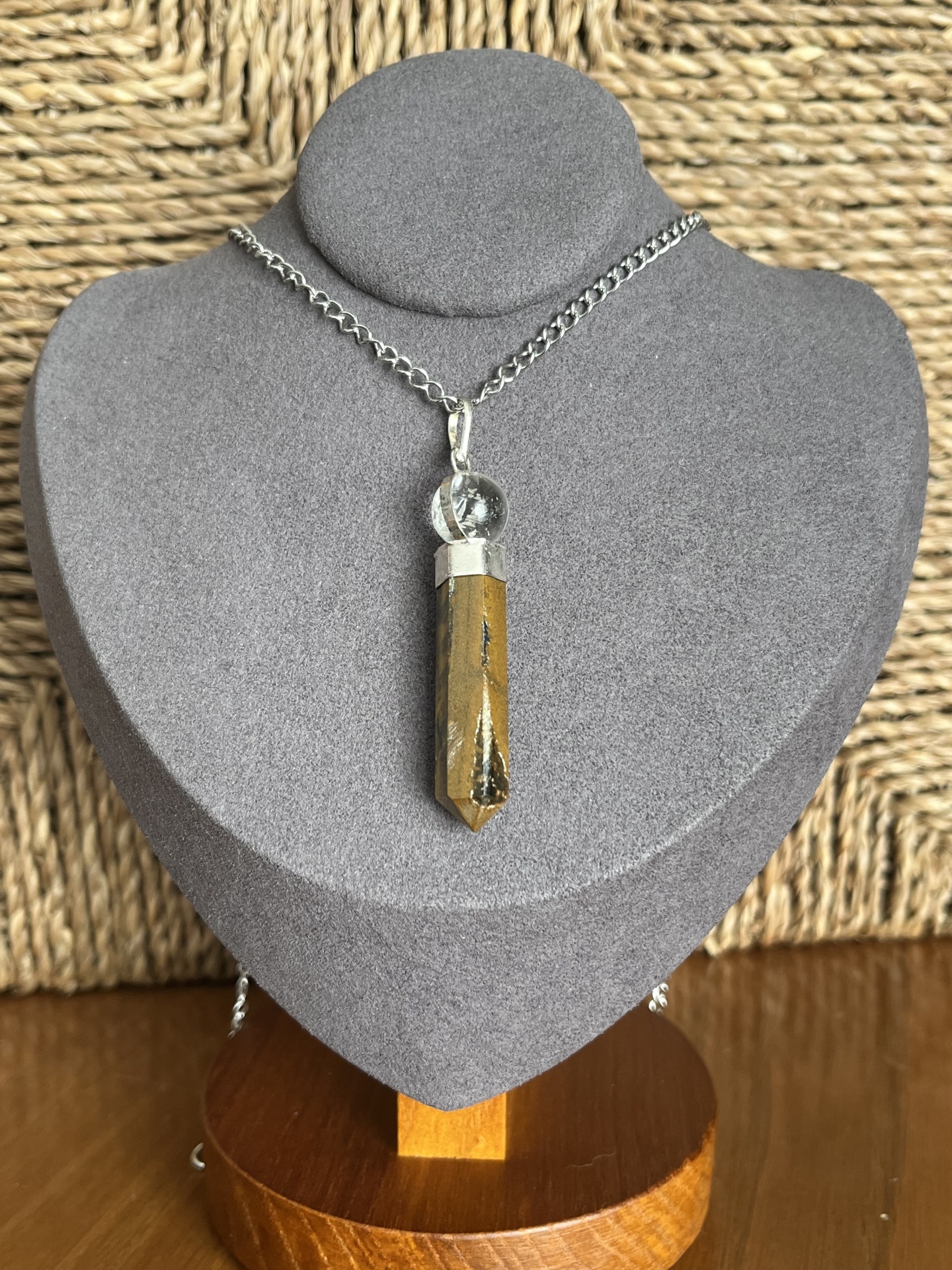 Colar em Aço Inoxidável – Olho de Tigre e Quartzo