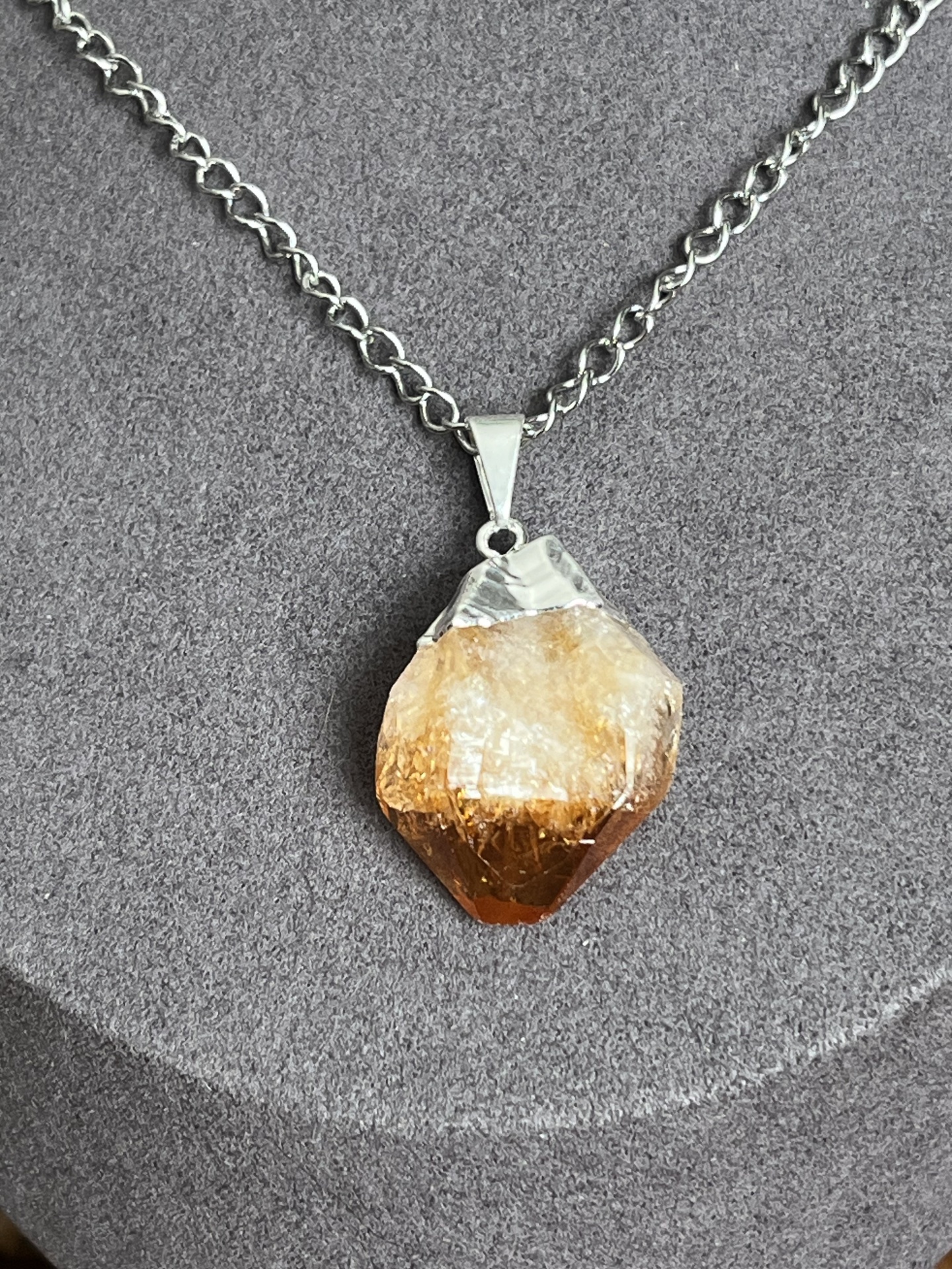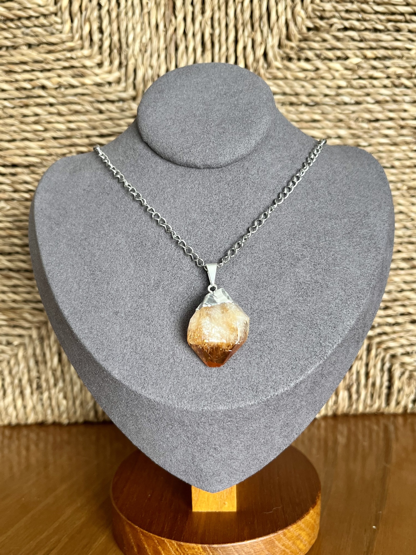 Colar em Aço Inoxidável com Pendente de Citrino Natural Bruto