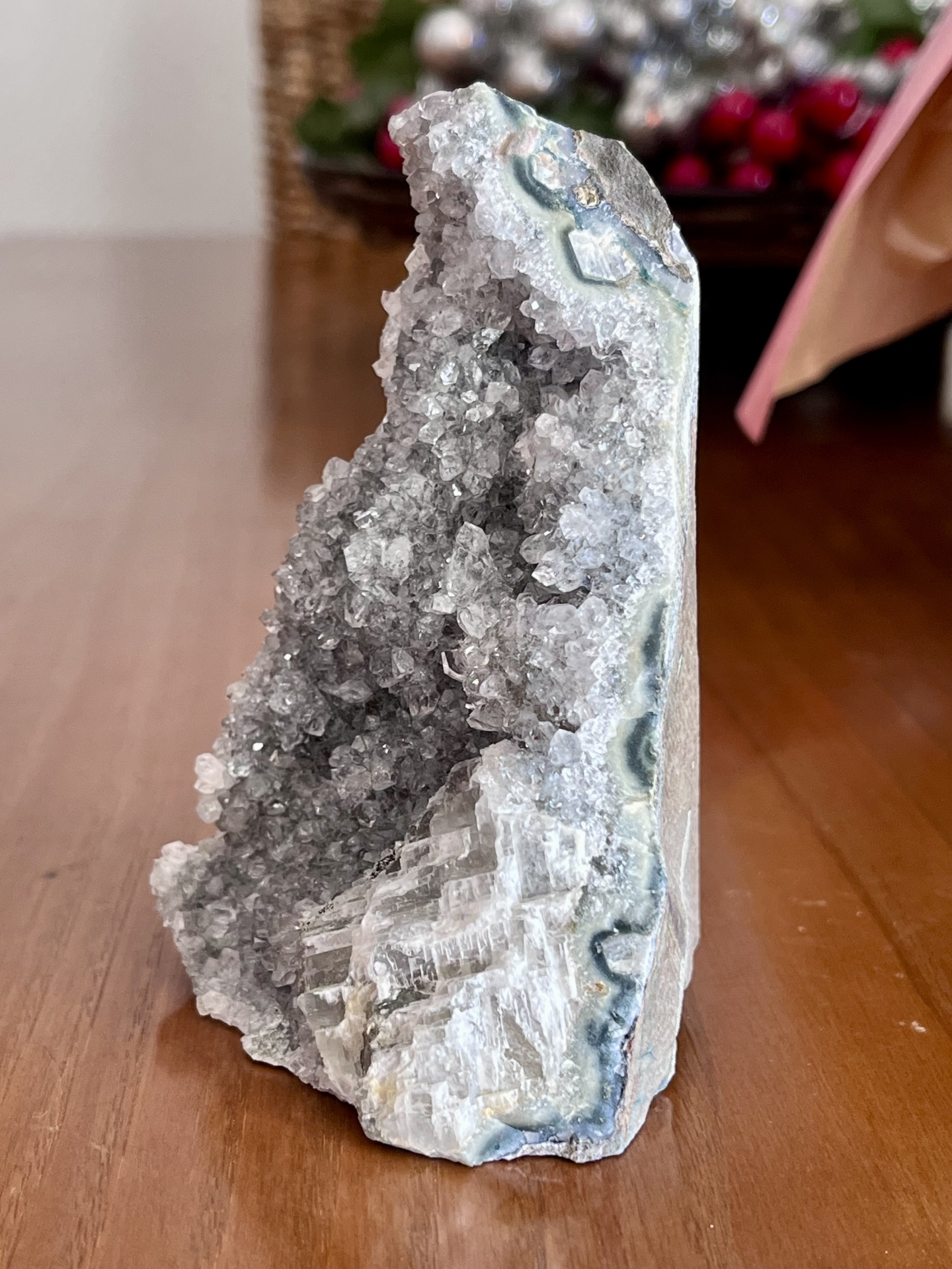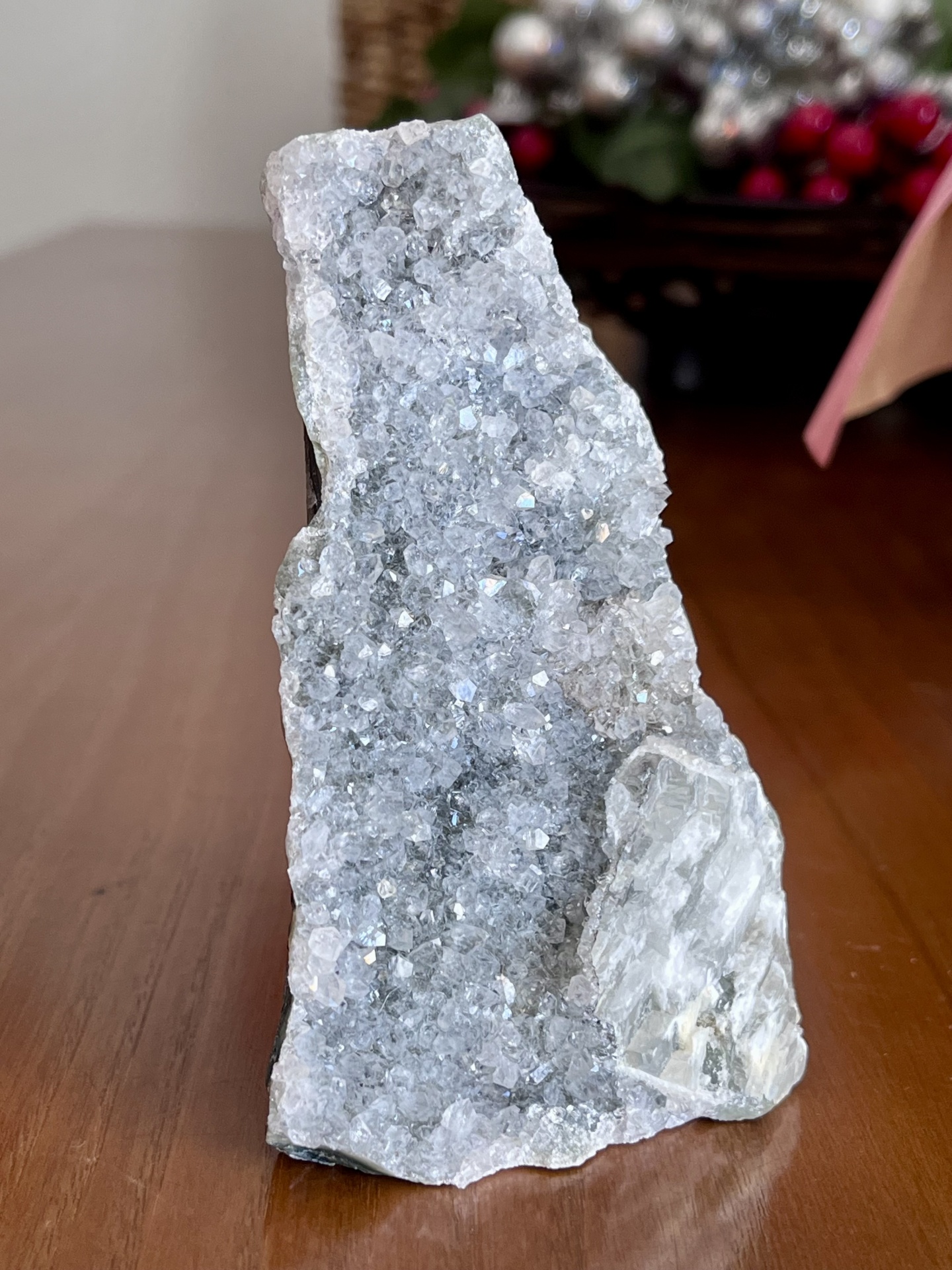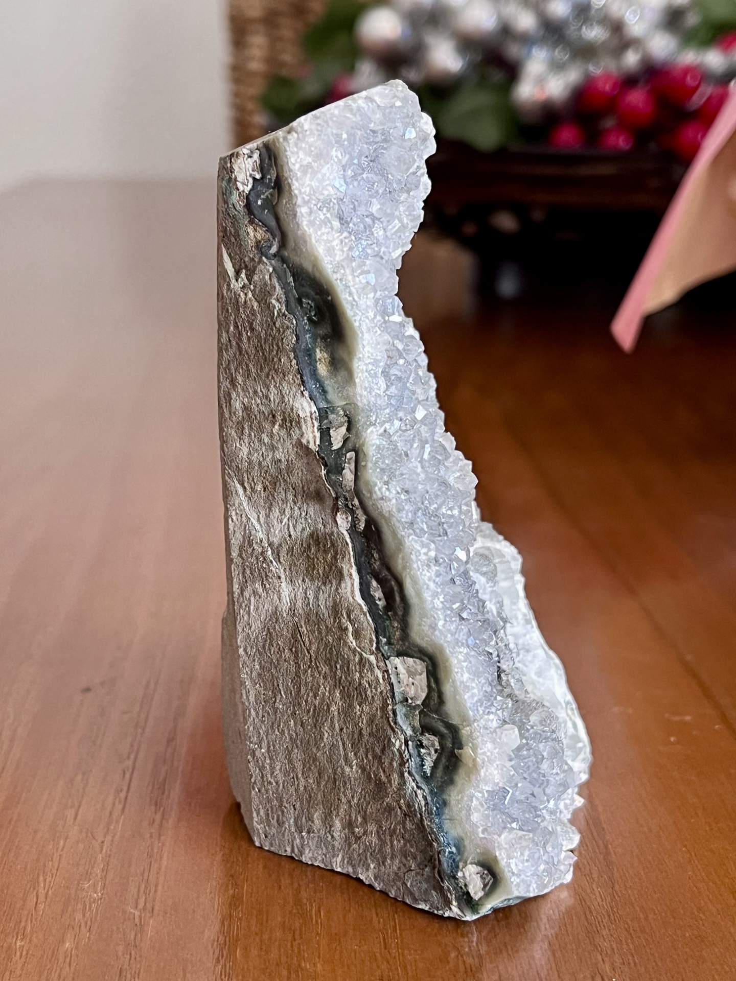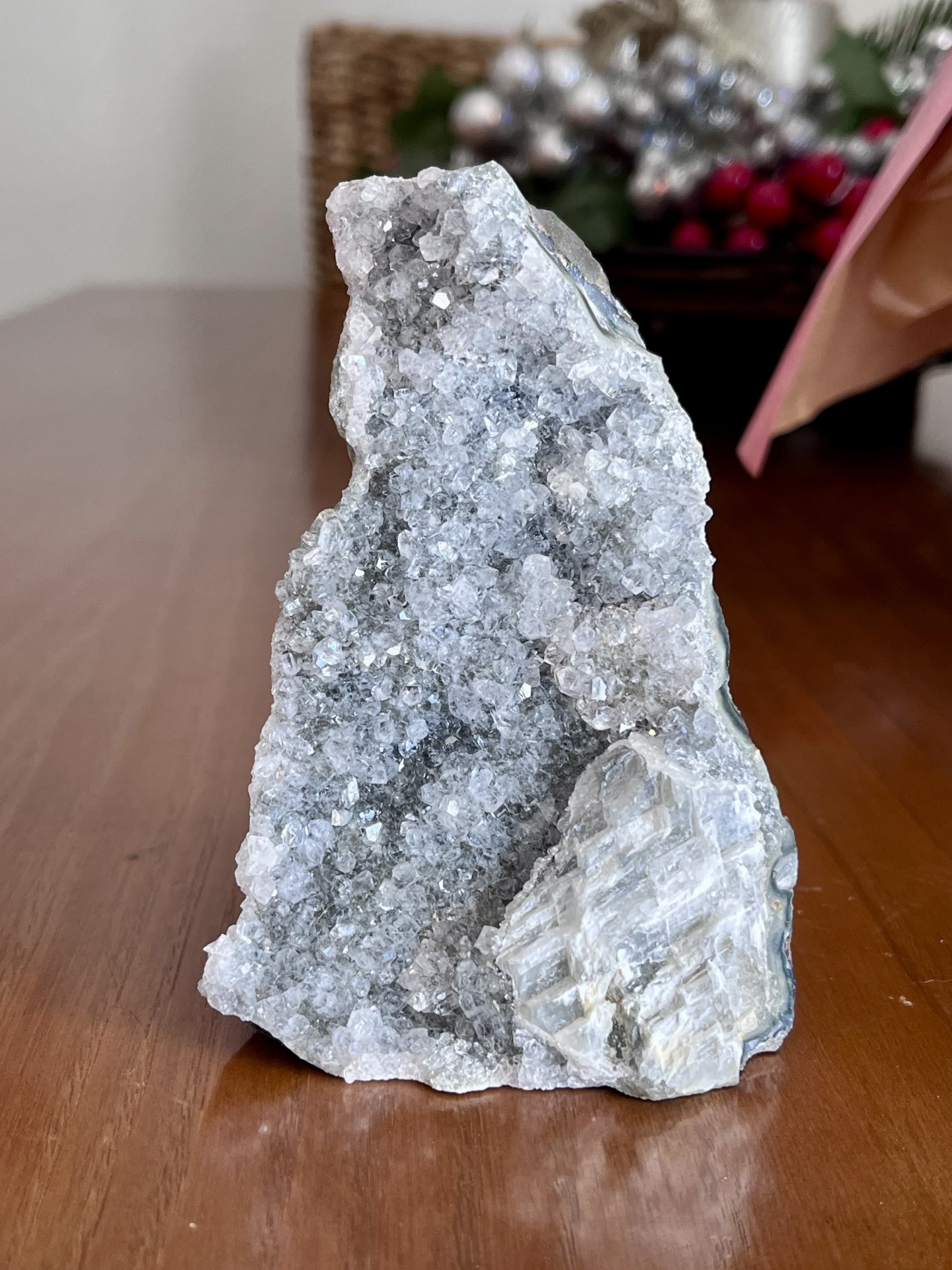 Com um peso aproximado de 364 g e dimensões estimadas de 12 × 6 × 4 cm, esta drusa é ideal para decoração sofisticada, colecionadores de minerais naturais ou como peça de destaque em ambientes que valorizam materiais autênticos e intemporais.