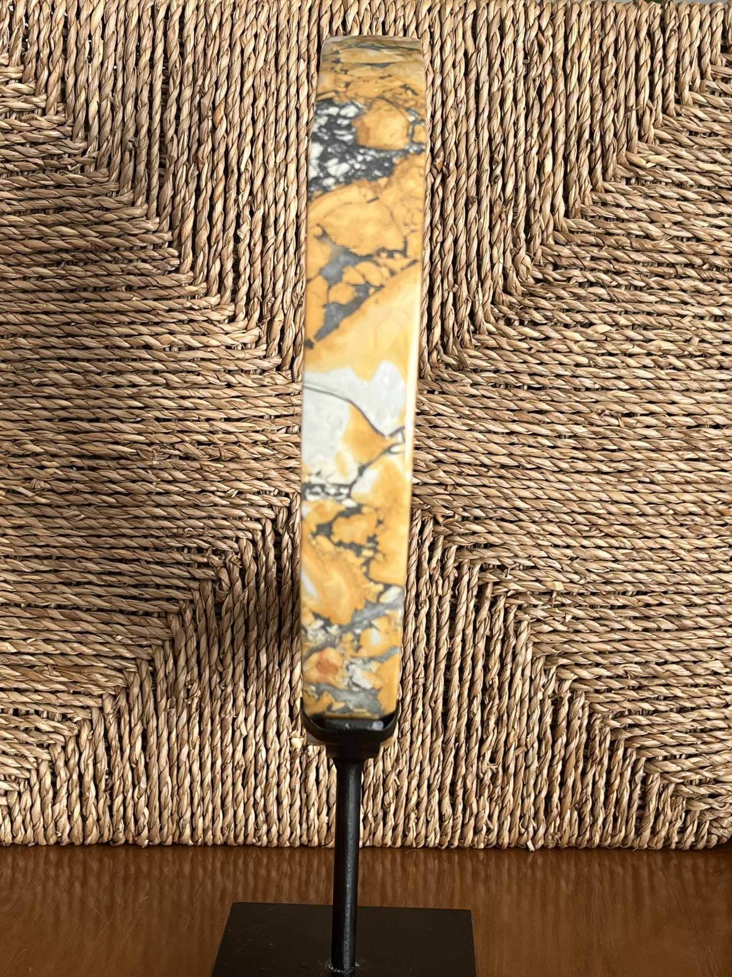 Por se tratar de um material natural, cada peça apresenta padrões e variações cromáticas exclusivas, reforçando o seu caráter único enquanto peça decorativa e de coleção.