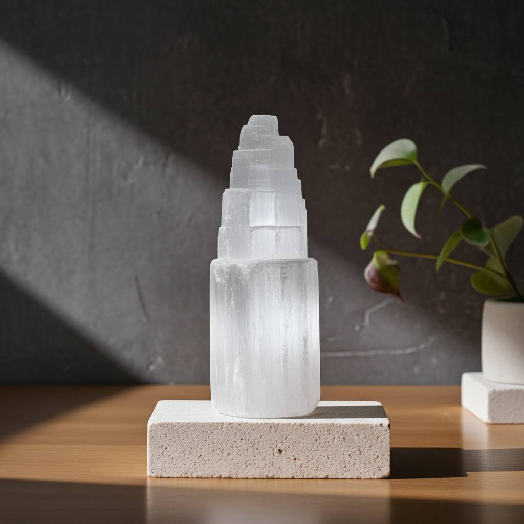 A selenite é amplamente conhecida pelas suas propriedades de purificação e clareza mental, sendo frequentemente utilizada em práticas de meditação, cura e espiritualidade. Proveniente de Marrocos, cada monólito é único, mas mantém a qualidade e o brilho típicos desta pedra translúcida.