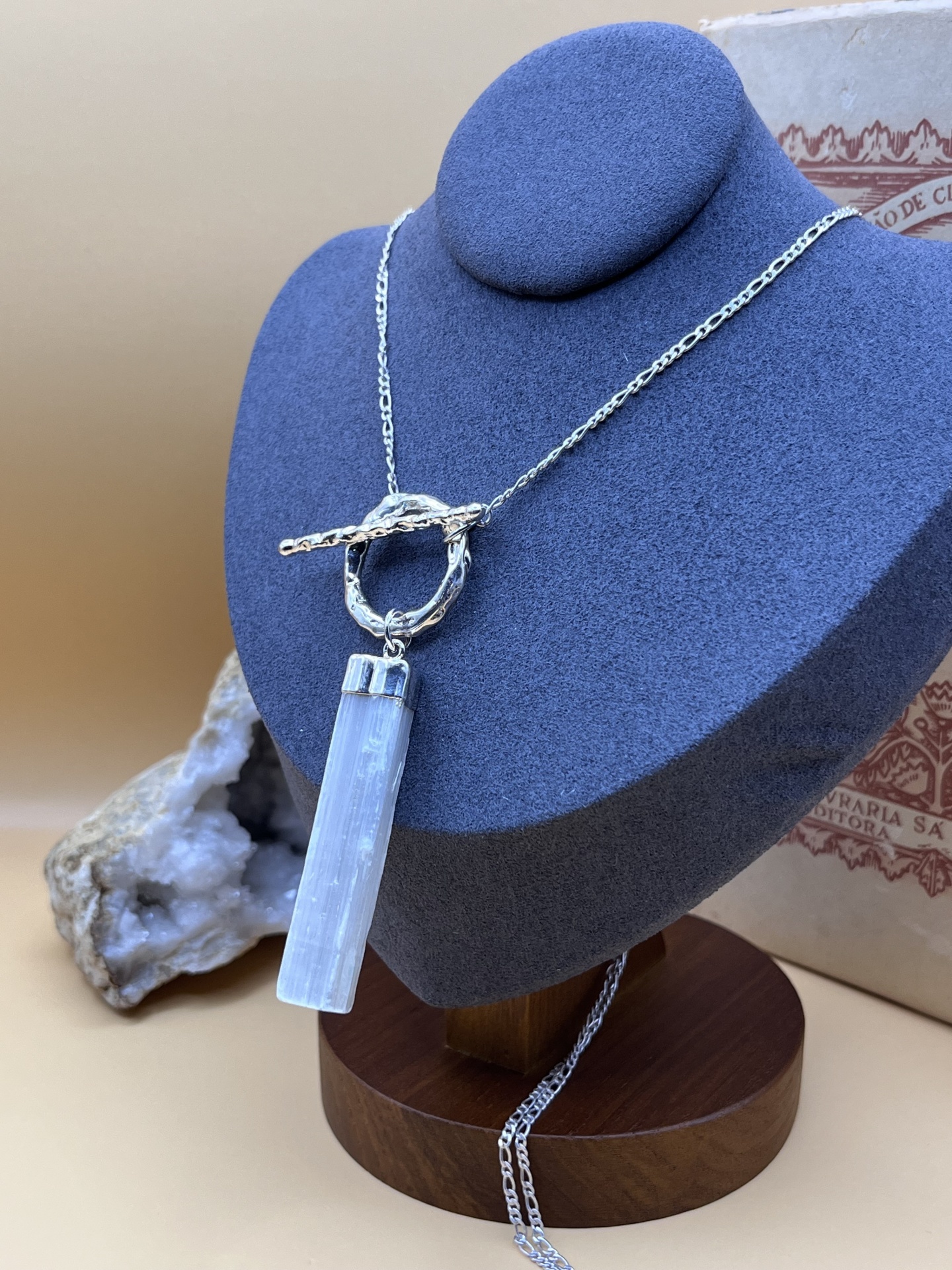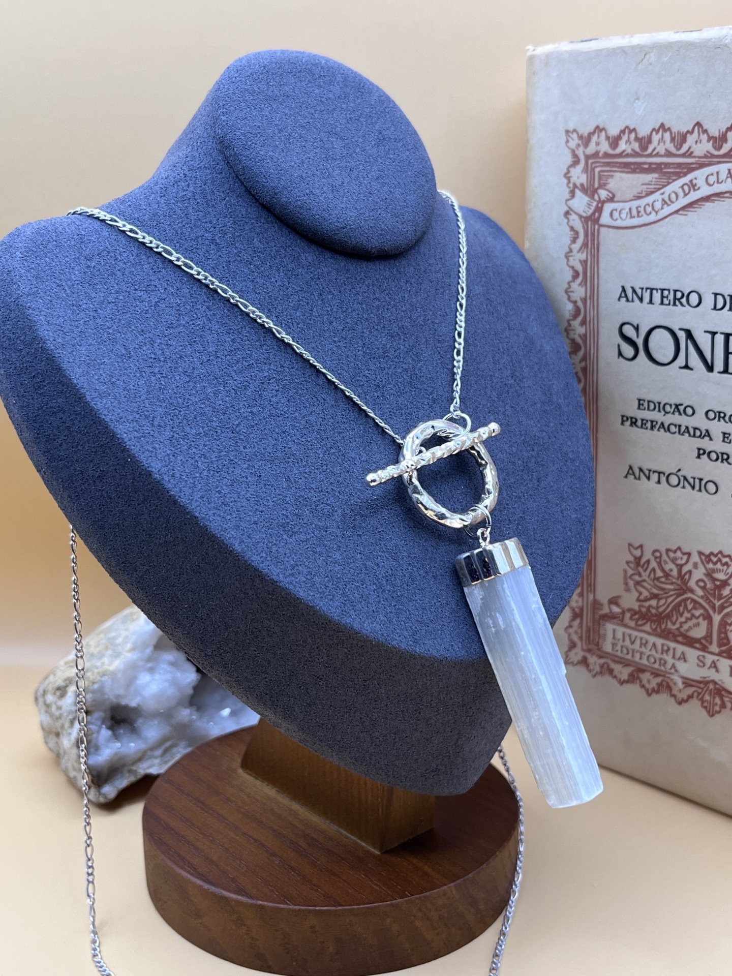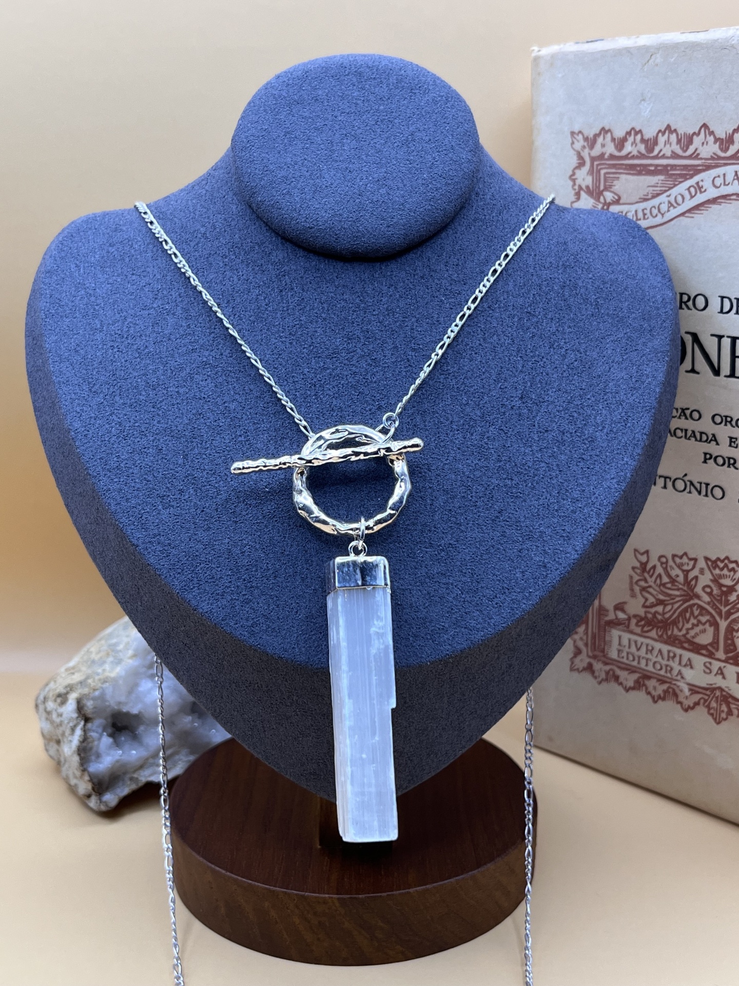 • Colar com pingente de Selenito Bruto em Banho de Prata