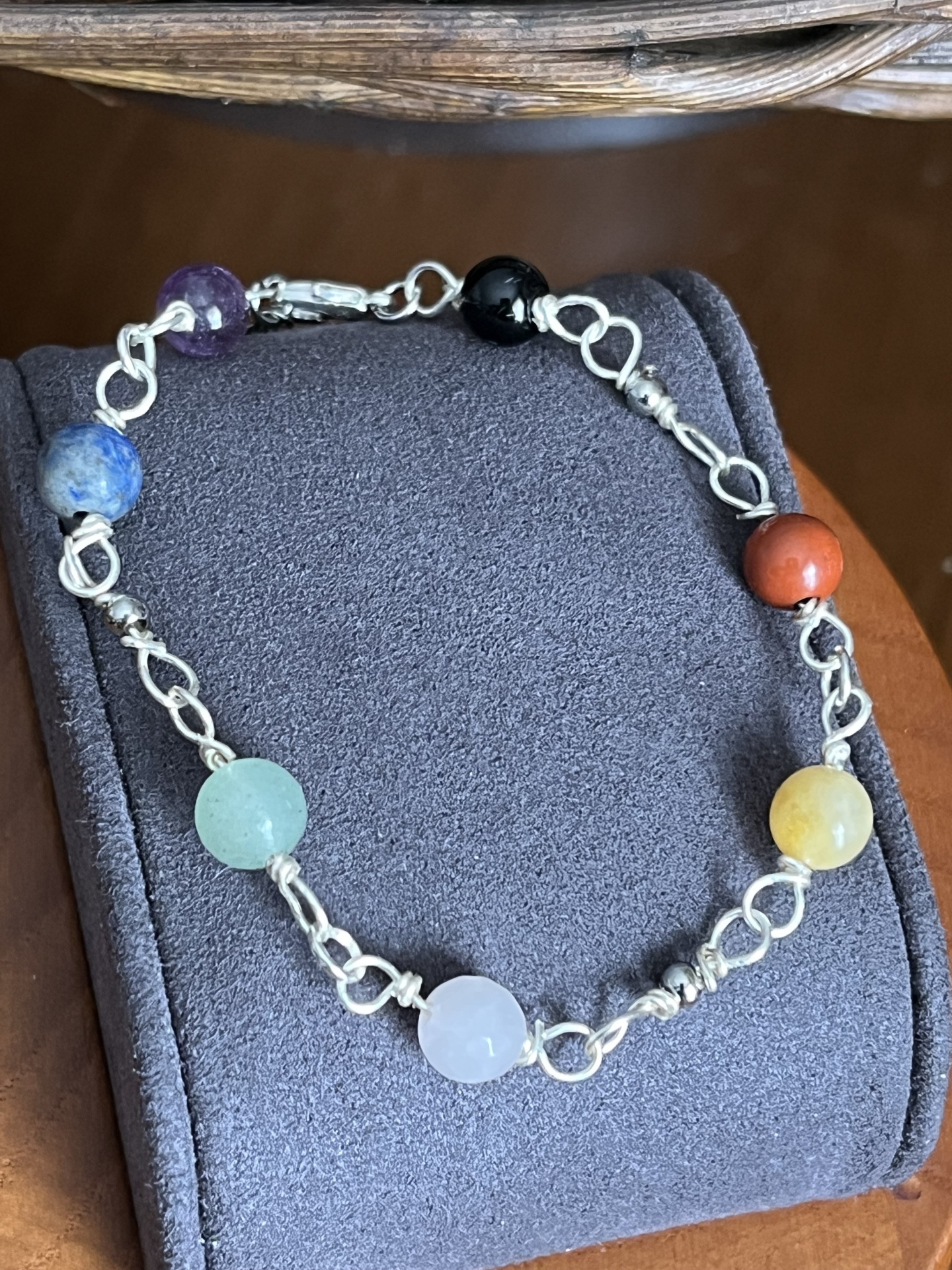 Esta elegante pulseira combina a durabilidade do aço inoxidável com a beleza de sete pedras naturais cuidadosamente selecionadas. Cada pedra apresenta uma cor e energia própria, criando uma peça harmoniosa, colorida e cheia de significado.