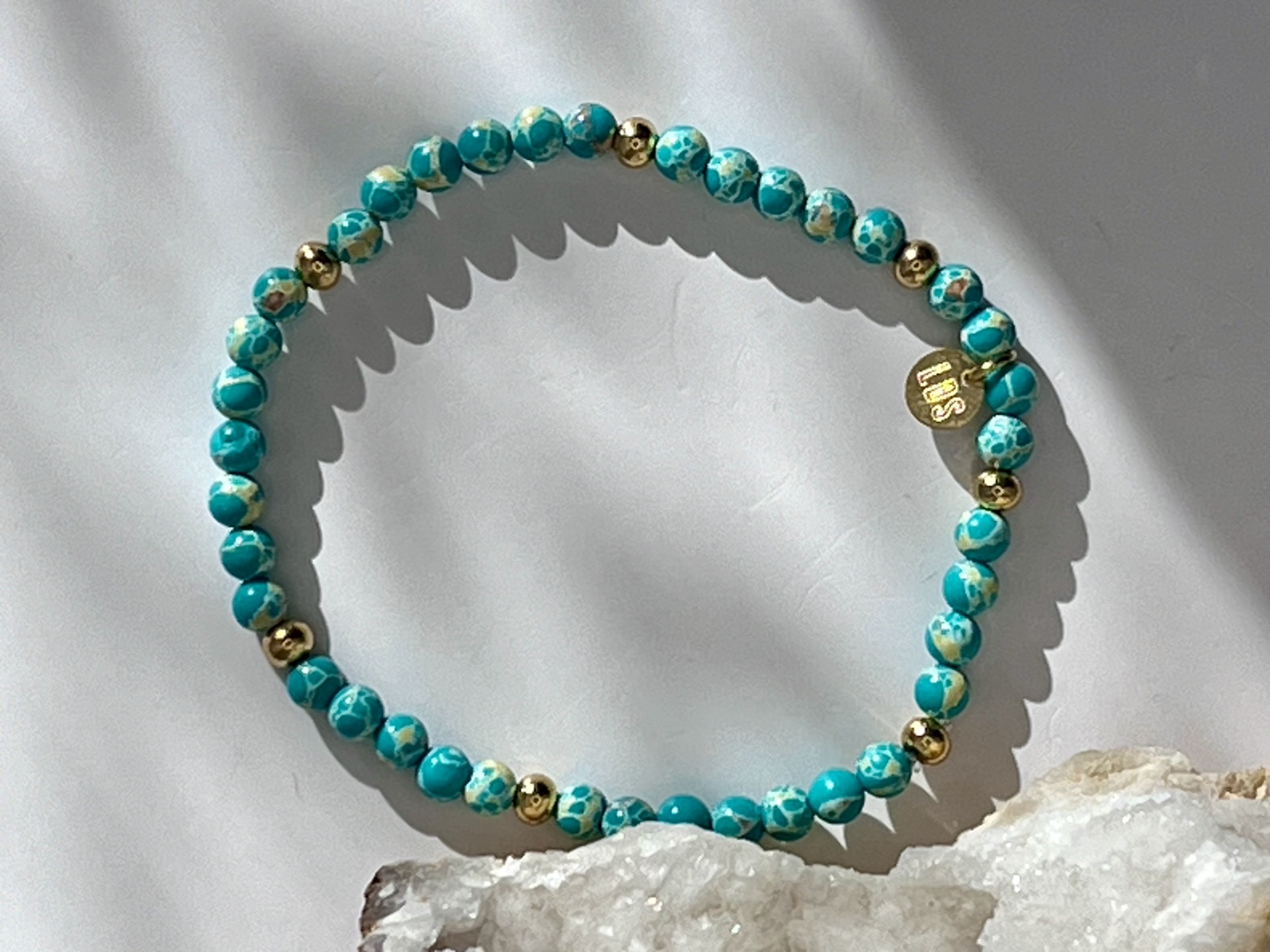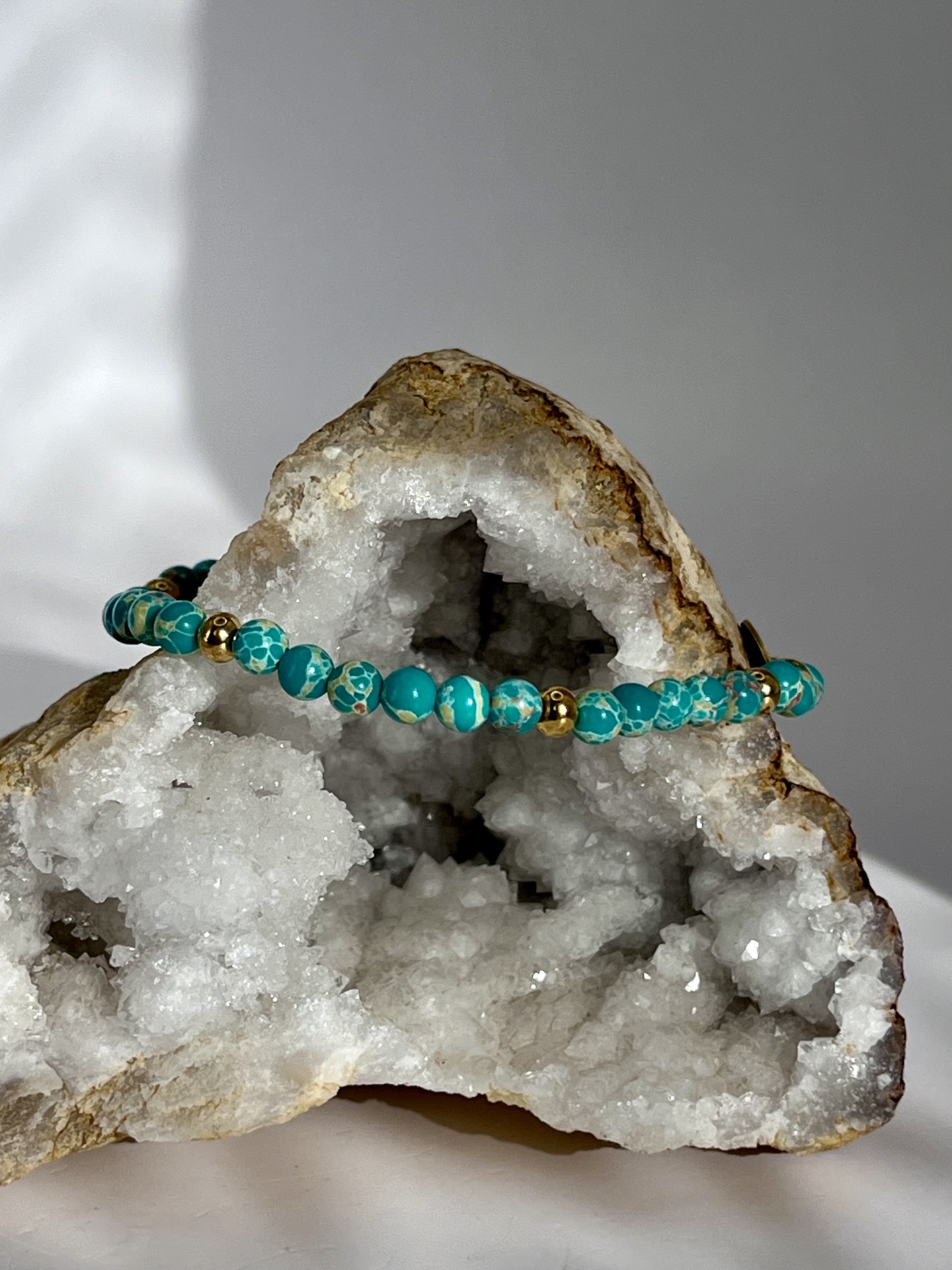 A Pulseira Elástica de Contas de Ágata Azul Turquesa é um acessório delicado e cheio de charme, ideal para quem busca uma peça versátil para complementar o visual. Com contas de ágata natural de 3 mm cuidadosamente lapidadas, essa pulseira apresenta um brilho sutil e uma tonalidade azul turquesa que transmite frescor e sofisticação.