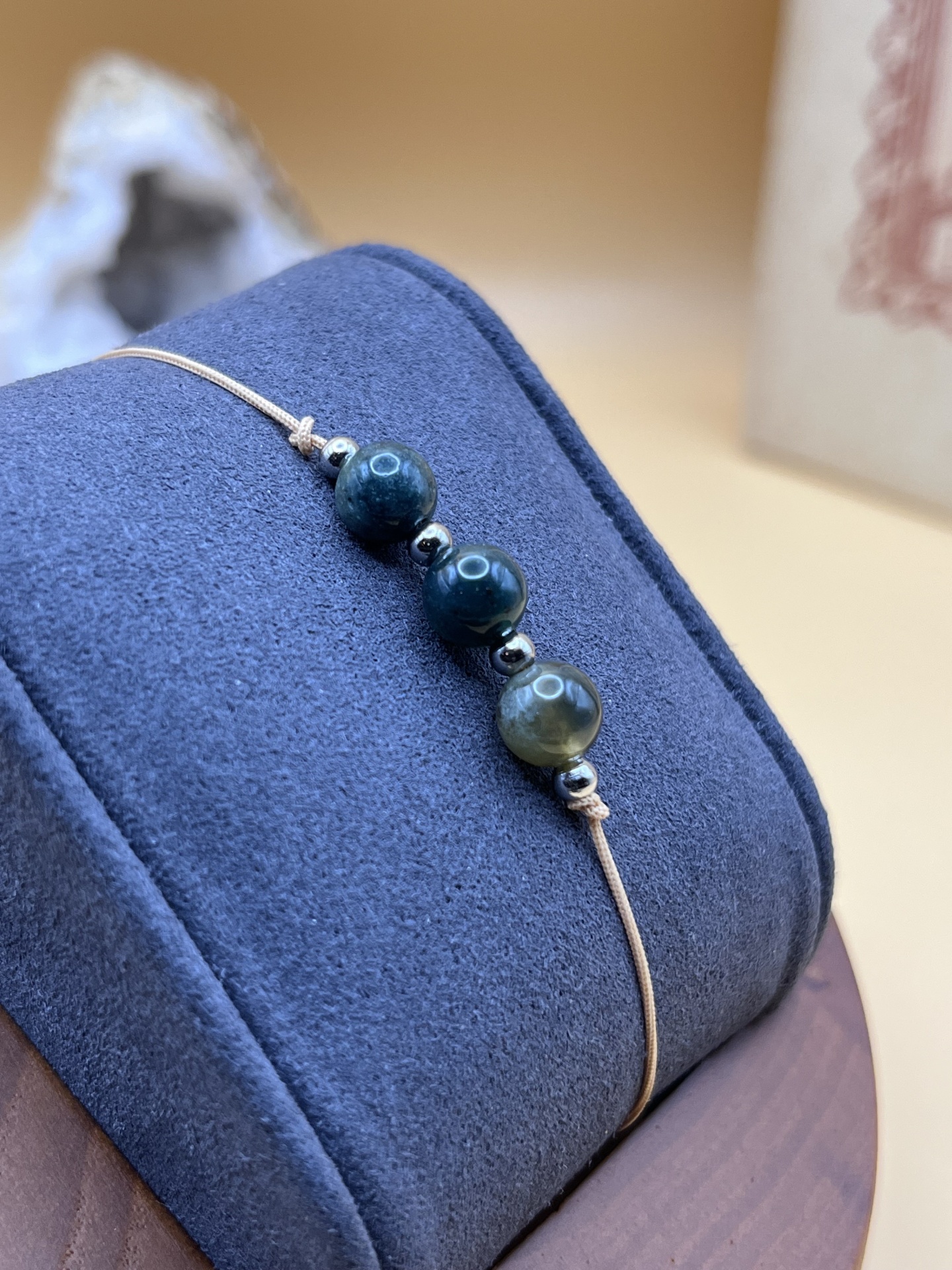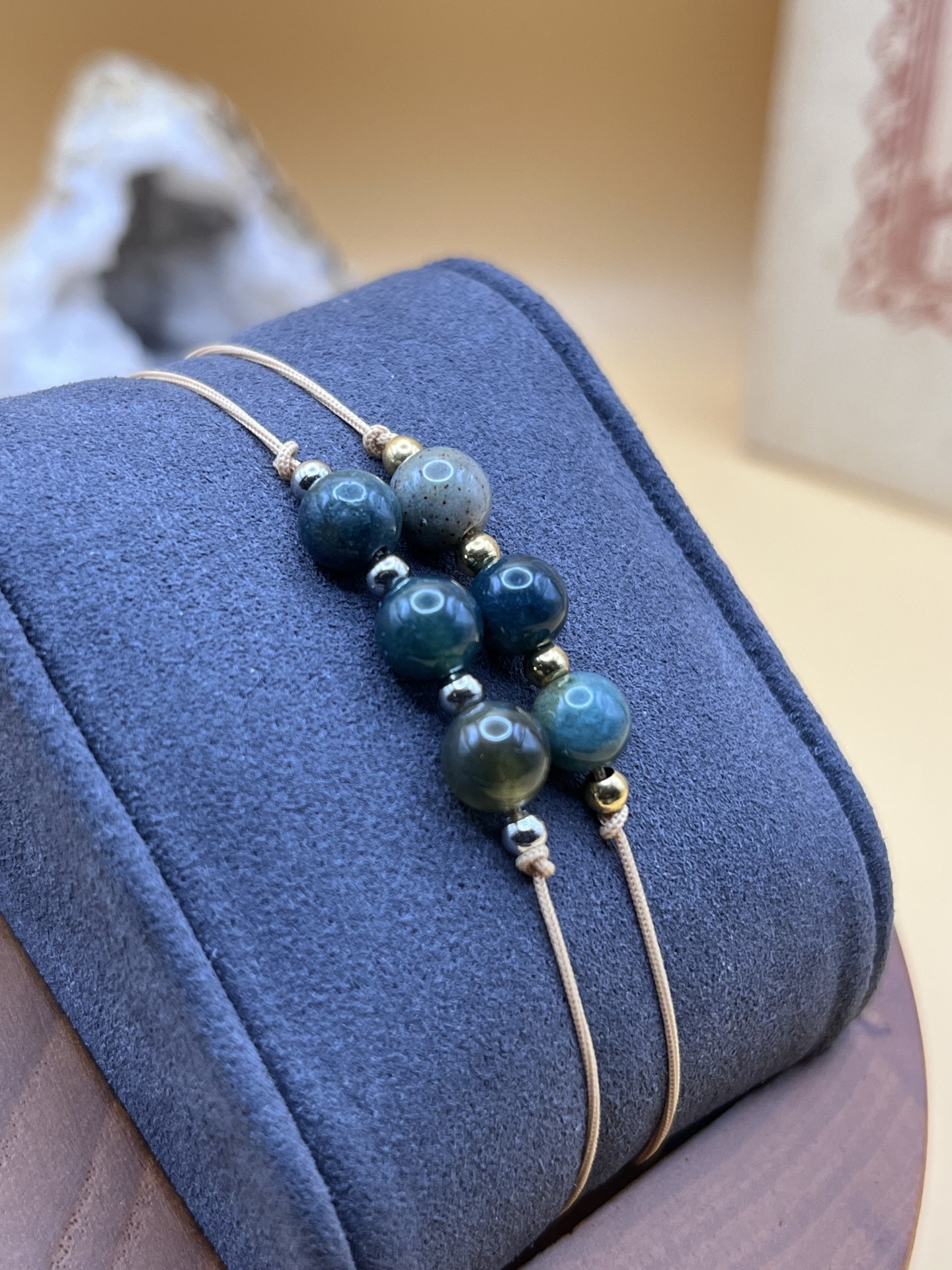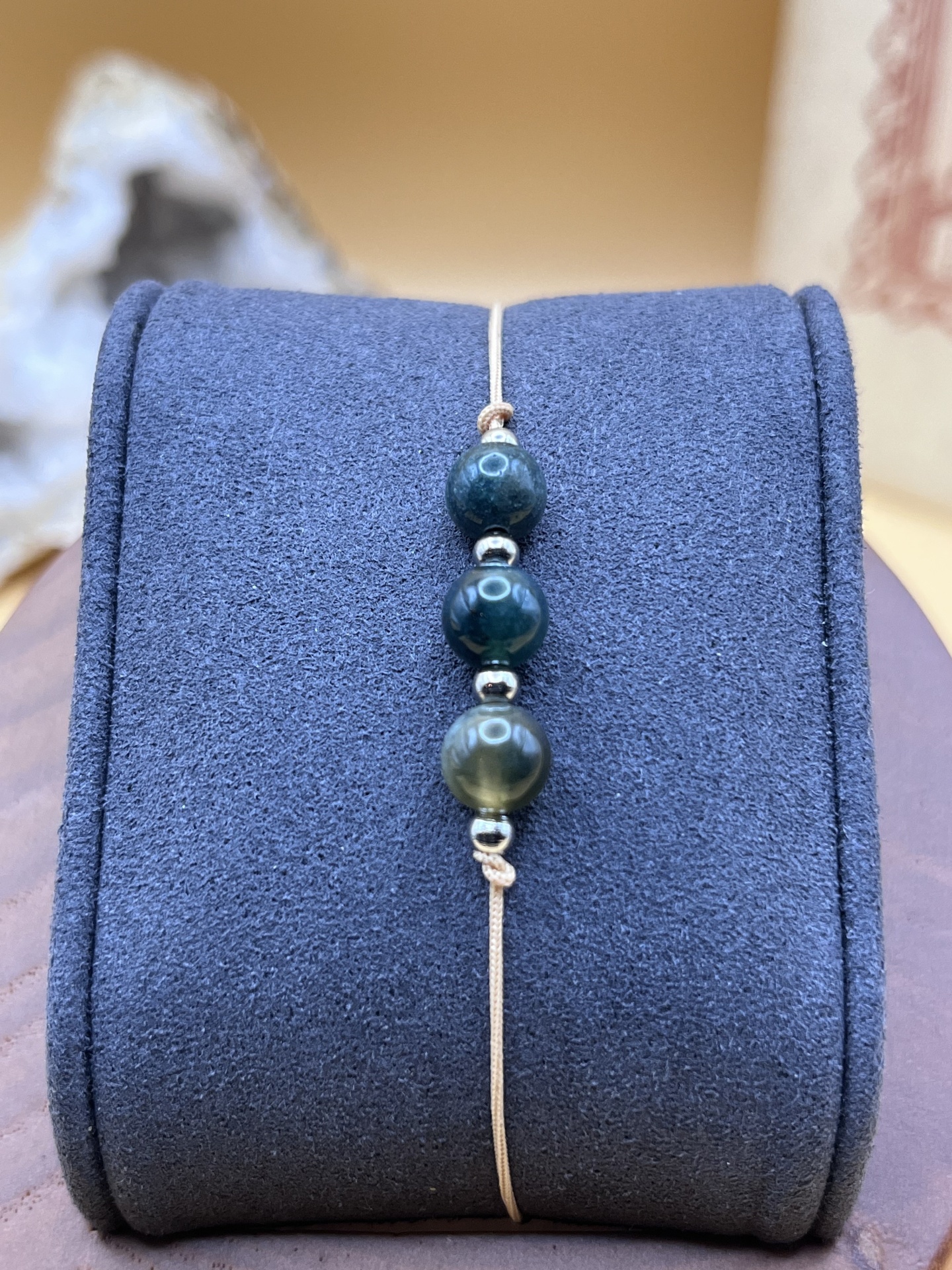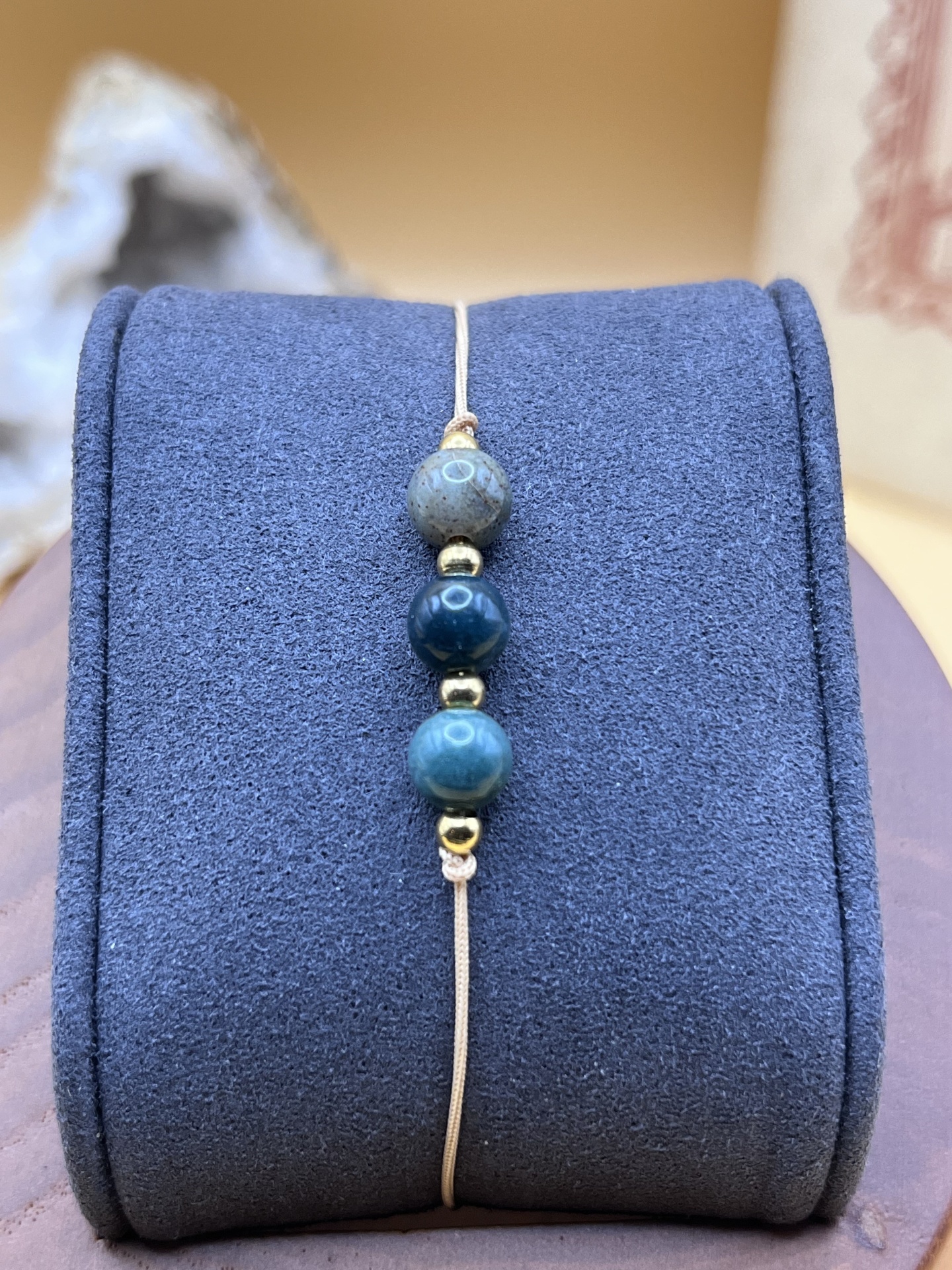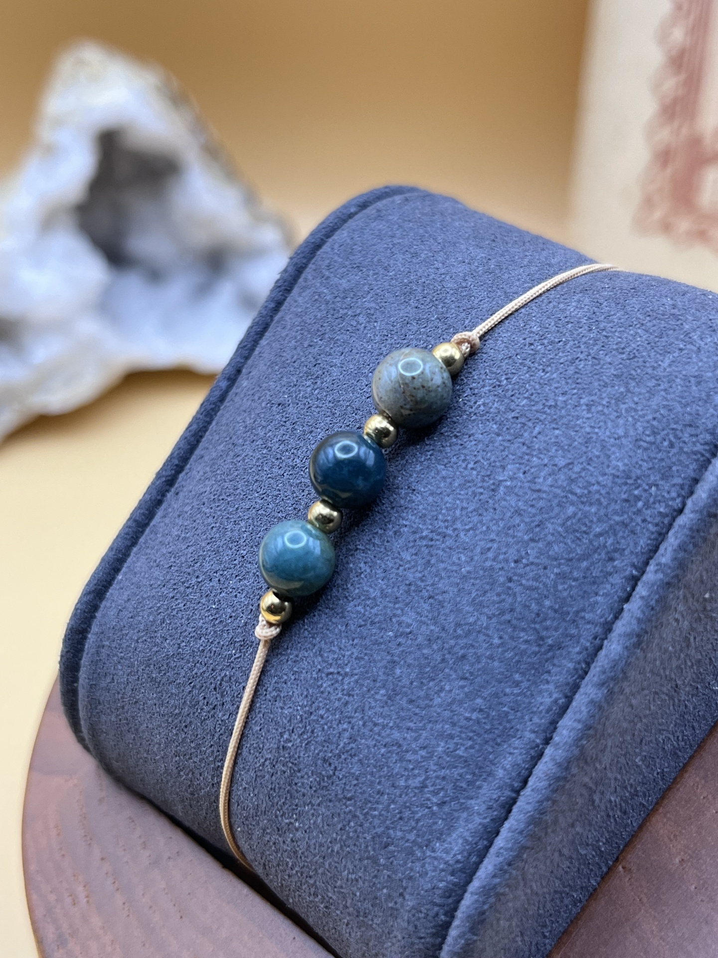 Pulseira artesanal em cetim bege com três pedras naturais de Ágata Indiana de 6 mm. Fabricada em Portugal, é leve e confortável para uso diário. A Ágata Indiana está associada a vitalidade e criatividade, oferecendo um toque de cor sem excesso. As contas metálicas podem ser douradas ou prateadas. Selecione a opção pretendida antes de adicionar ao carrinho. Como as pedras são naturais, existem diferenças subtis de cor. Recomenda-se retirar durante o banho para maior durabilidade.