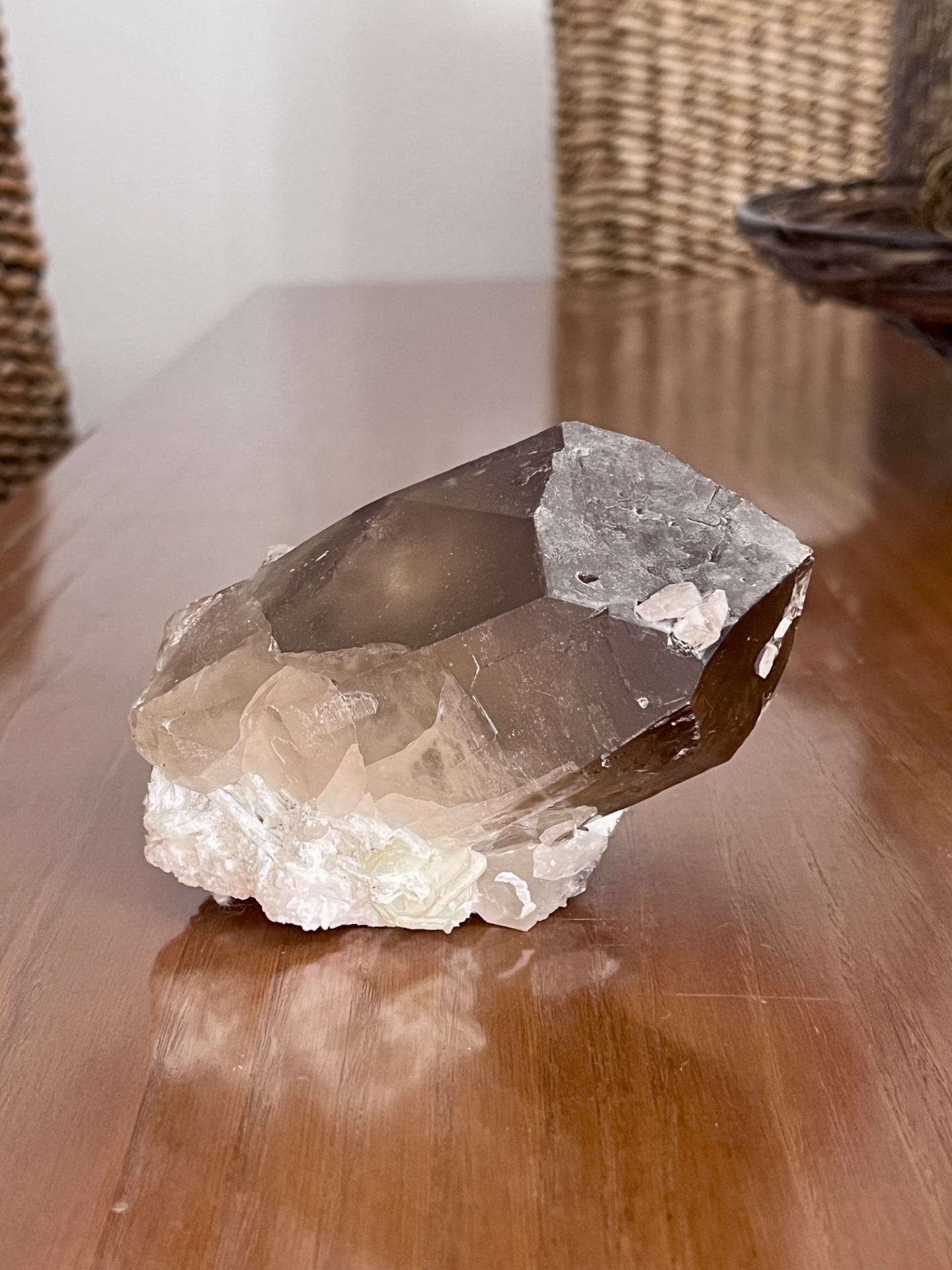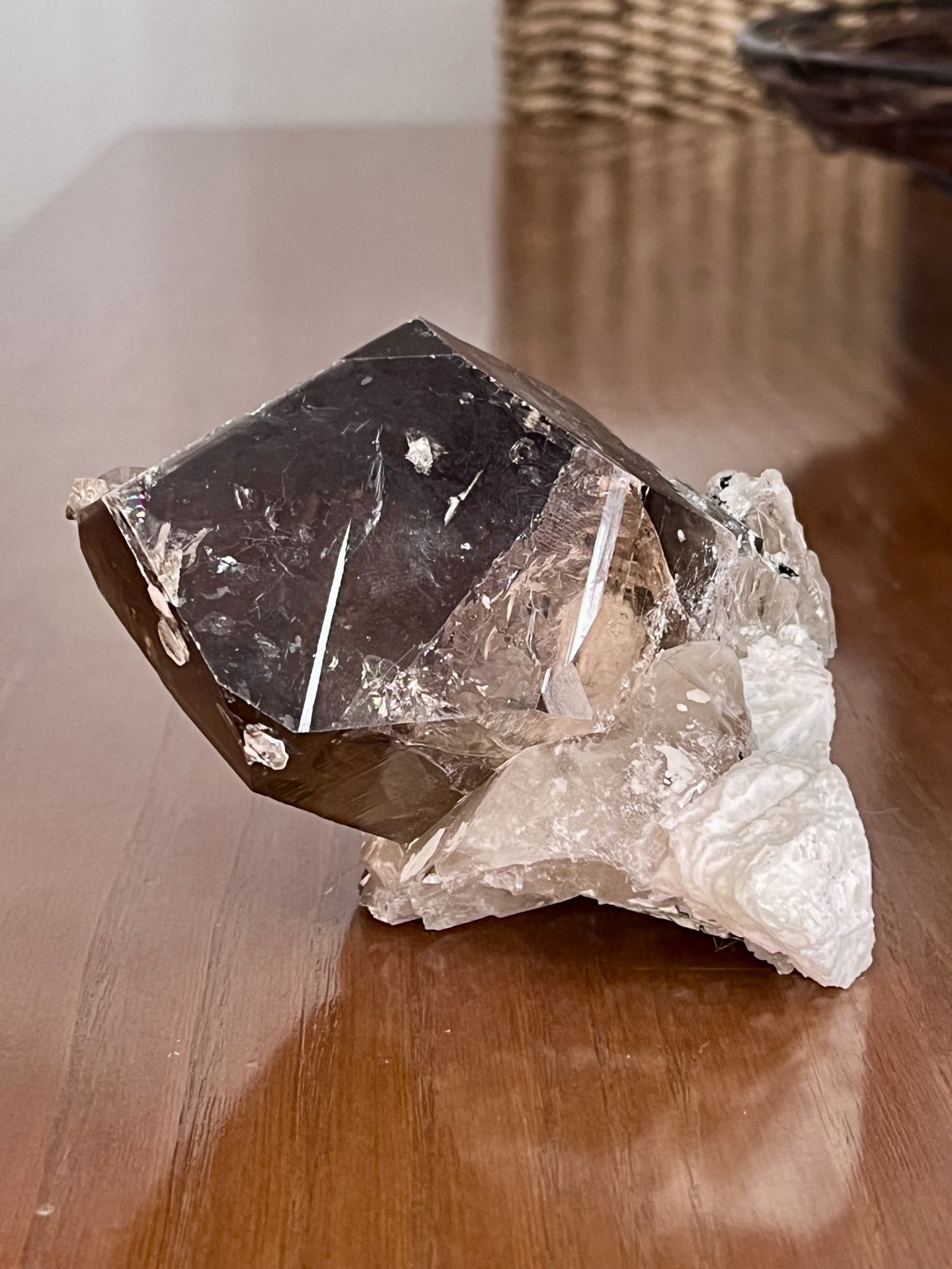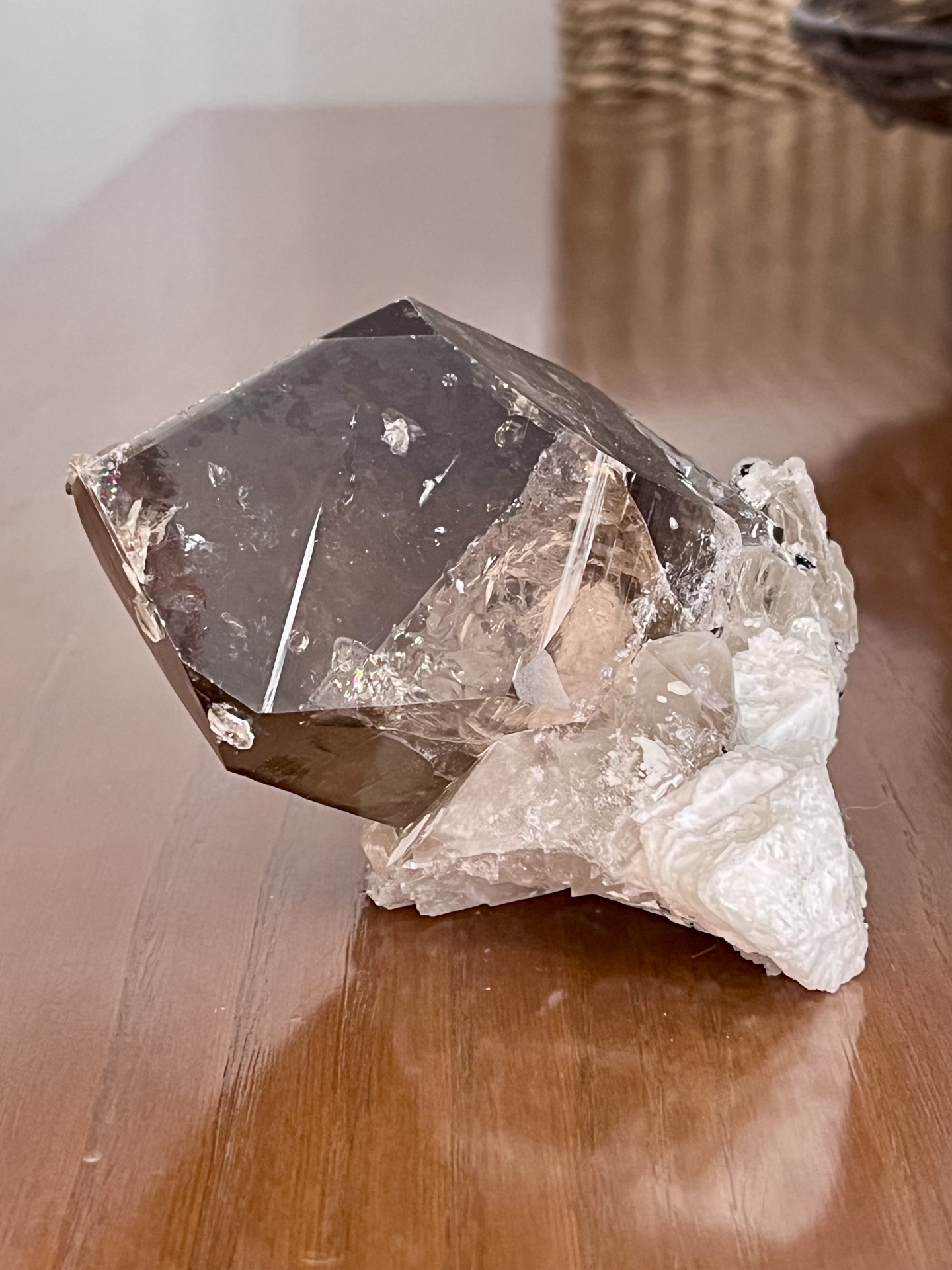 Apresentamos um exemplar raro e deslumbrante: o Quartzo Fumê Arco-Íris. Esta peça única, originária das profundezas geológicas do Afeganistão, é uma celebração da natureza em todo o seu esplendor. Com um peso de 622 gramas e dimensões de 106×93×82 mm, este cristal exibe um espectro de cores, como sugerido pelo seu nome, fazendo jus à beleza inigualável do quartzo fumê.