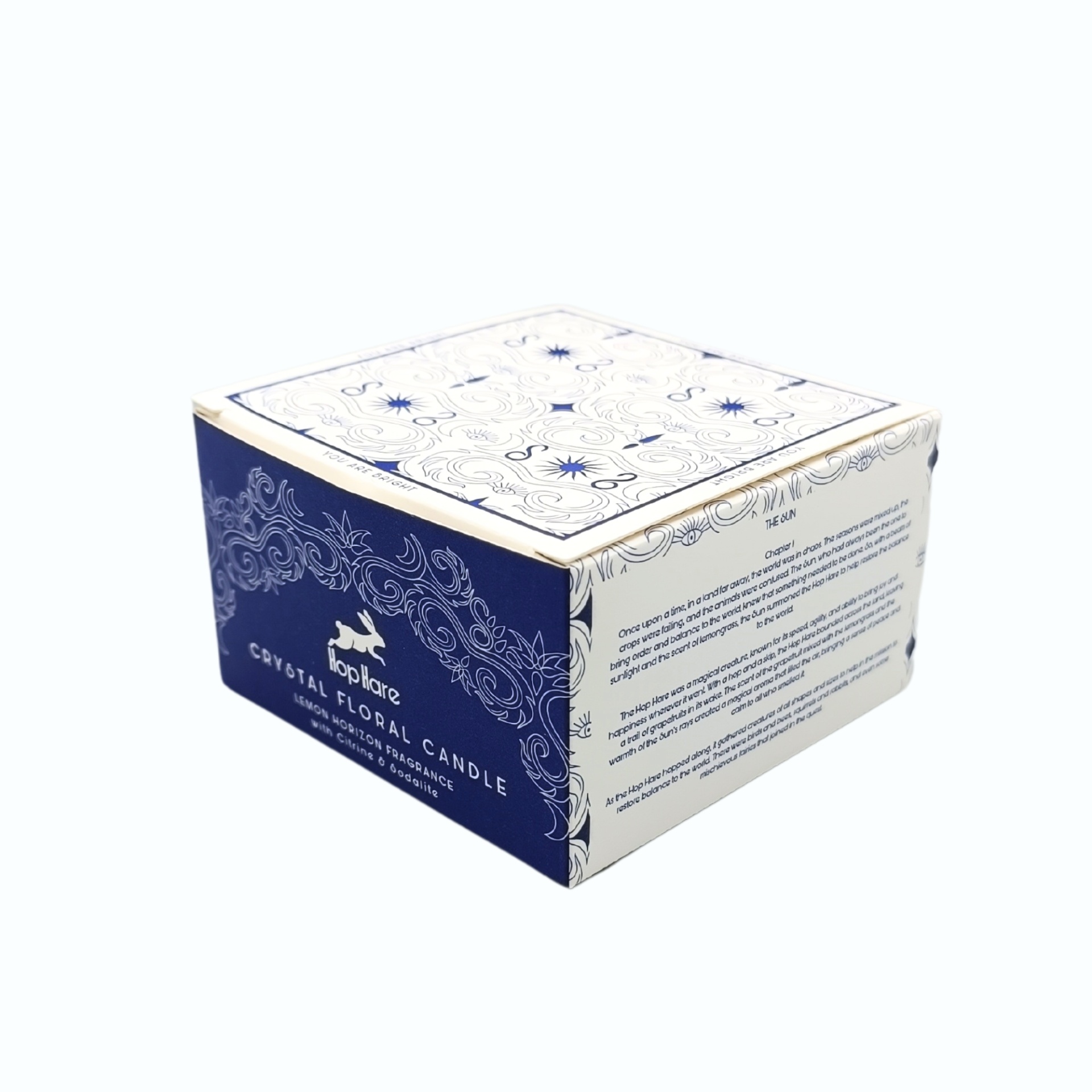 Dentro de cada vela da coleção Hop Hare, encontre uma pedra preciosa cuidadosamente colocada, rodeada por delicadas lascas de cristais e flores secas. Uma verdadeira obra-prima que combina beleza natural e energia positiva.